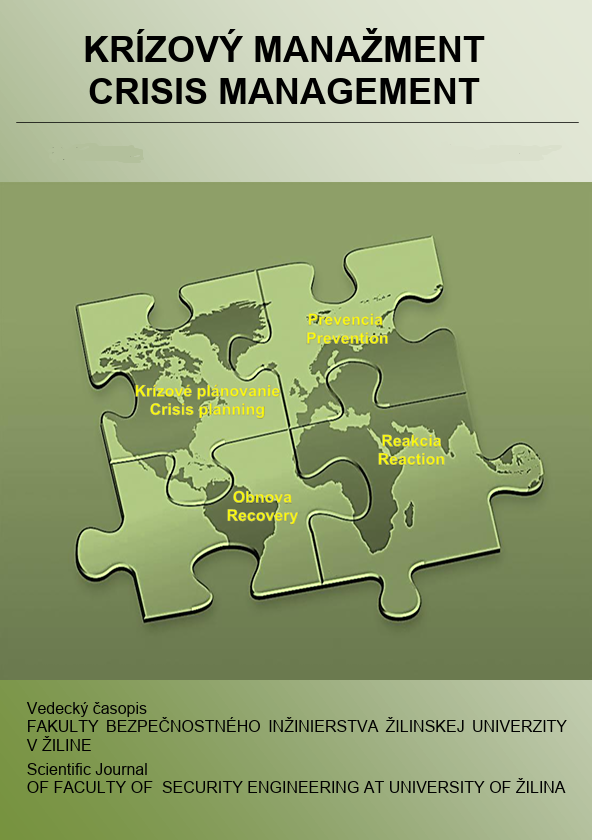 Title Krízový manažment : vedecko-odborný časopis Fakulty bezpečnostného inžinierstva Žilinskej univerzity v Žiline : časopis pre pracovníkov zaoberajúcich sa otázkami bezpečnosti, rizík, krízovým manažmentom a krízovým plánovaním Parallel title Crisis Management = Scientific-Technical Journal of Fakulty of Security Engineering at University of Žilina in Žilina Issue data Žilina : Fakulta bezpečnostného inžinierstva Žilinskej univerzity v Žiline ISSN 1336-0019 (print) , 2730-0544 (online) DOI 10.26552/krm.J.2022.1 Note Spracovaný v EKO-INDEX 2007-2015, 2022-. - Registrovaný: Erihplus Numbering [Roč. 1, č. 1 (2002)]- Periodicity 2x ročne Years of Consumption 2007- Years of Storage uchovávame trvale vo fonde SEK Document kind časopisy Language Slovak, English Country of Edition Slovak Republic systematics 65.012.4 - Technika a metódy riadenia. Riadenie. Vedenie. Autorita Keywords manažment krízový * správa štátna * samospráva * politika bezpečnostná Annotation Pôvodné vedecké a odborné články zamerané na krízový manažment, bezpečnostný manažment, záchranné služby, krízové plánovanie, obranné plánovanie, civilné núdzové plánovanie, analýzu a hodnotenie rizík a ďalšie oblasti späté so všeobecnou a špecifickou bezpečnosťou. URL https://www.fbi.uniza.sk/stranka/casopis-krizovy-manazment Database PERIODIKÁ - Súborný záznam periodika References (4) - PUBLIKAČNÁ ČINNOSŤ (121) - ARTICLES References Súborný záznam: použite odkaz na záznam čísla alebo zväzku Numbers 2025: 1 2024: 1, 2 2023: 1, 2 2022: 1, 2 Bunches 2021: 1-2 2020: 1-2 2019: 1-2 2018: 1-2 2017: 1-2 2016: 1-2 2015: 1-2 2014: 1-2 2013: 1-2 2012: 1-2 2011: 1-3 2010: 1-2 2009: 1-2 2008: 1 2007: 1-2