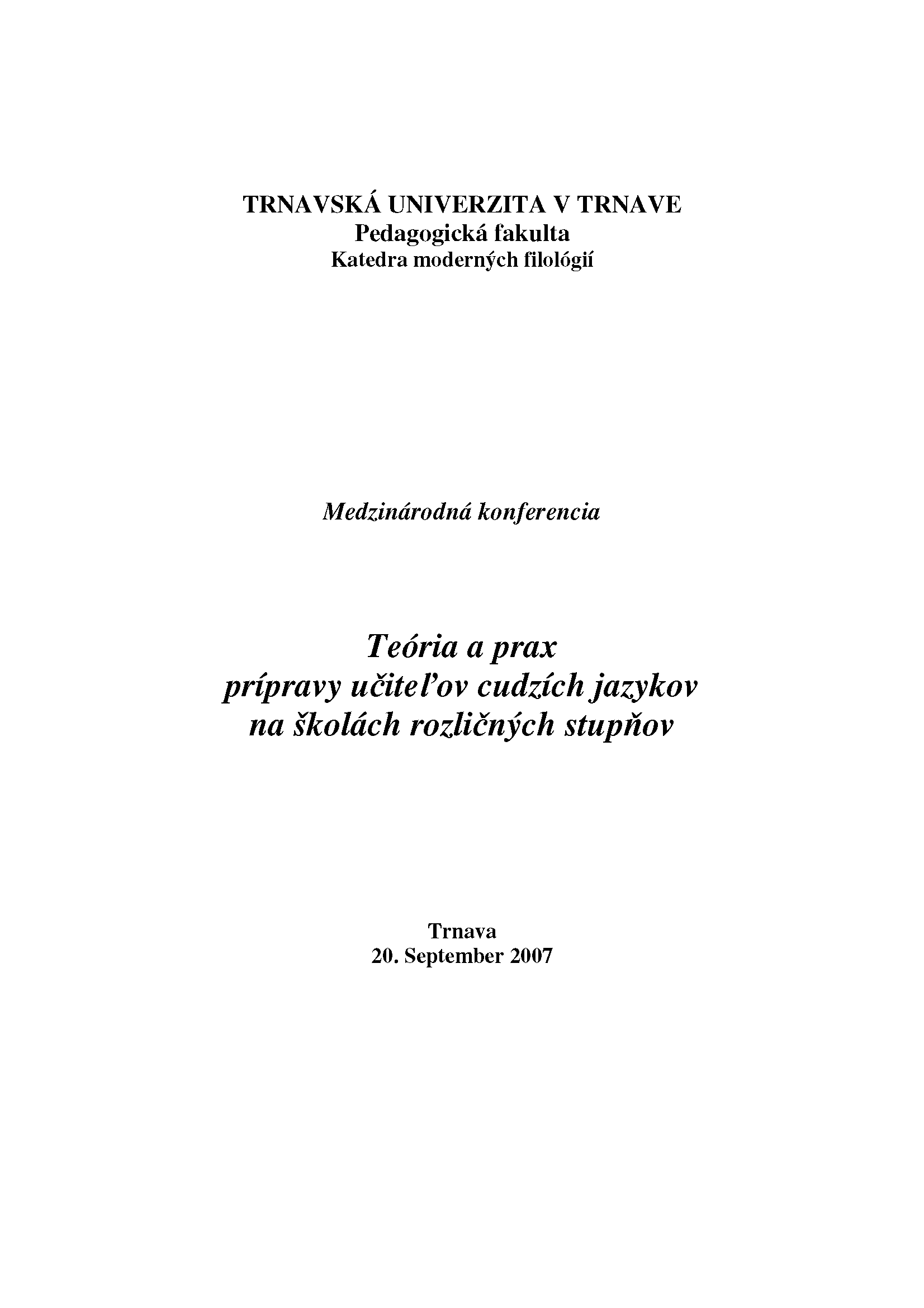 1. Title Teória a prax prípravy učiteľov cudzích jazykov na školách rozličných stupňov [elektronický zdroj] : zborník príspevkov : medzinárodná konferencia : Trnava, 20. septembra 2007