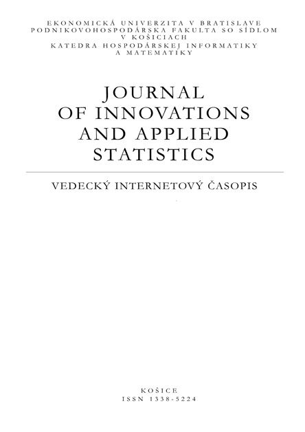 Title Journal of Innovations and Applied Statistics [elektronický zdroj] : vedecký internetový časopis Issue data Košice : Katedra kvantitatívnych metód PHF EU ISSN 1338-5224 (online) Note [Do r. 2021 vydávala Katedra hospodárskej informatiky a matematiky PHF EU]. - Spracovaný v EKO-INDEX 2011- Additional Variant Titles JIAS Numbering Roč. 1, č. 1 (2011)- Periodicity 2x ročne Document kind electronic magazines Language Slovak Country of Edition Slovak Republic systematics 658.5 - Organizácia výroby. Plánovanie výroby. Konštrukcia. Kontrola výroby Keywords inovácia * štatistika aplikovaná * riadenie podnikové * politika podnikania Annotation Moderné efektívne systémové inovačné postupy a podpora exaktných hlavne štatistických metód. Informácie o najnovších vedeckých poznatkoch, metódach a postupoch využiteľných pri inováciách v konkrétnych podmienkach výrobnej i nevýrobnej praxe. URL http://jias.euke.sk/ Database PERIODIKÁ - Súborný záznam periodika References (191) - PUBLIKAČNÁ ČINNOSŤ (53) - ARTICLES References Súborný záznam: použite odkaz na záznam čísla alebo zväzku Numbers 2025: 1, 2 2024: 1-2 2023: 1, 2 2022: 1-2 2021: 1-2 2020: 1, 2 2019: 1, 2 2018: 1, 2 2017: 1, 2, 3 2016: 1, 2 2015: 1, 2 2014: 1, 2 2013: 1, 2 2012: 1, 2 2011: 1