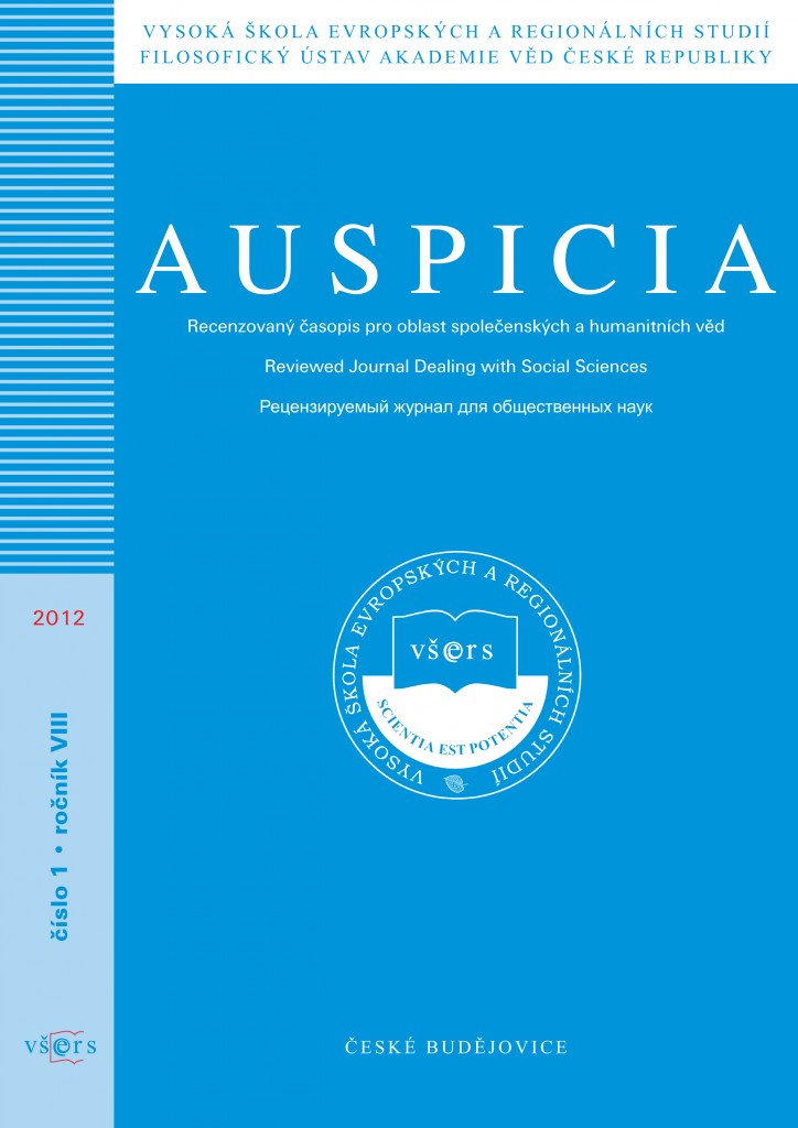 Title Auspicia : recenzovaný časopis pro otázky společenských a humanitných věd : recenziruemyj žurnal dlja obščestvennych nauk Parallel title Auspicia : a peer-reviewed journal for questions of the social sciences Issue data České Budějovice : Vysoká škola evropských a regionálních studií ISSN 1214-4967 Year, No. Roč. [9], č. 1 (2012) Document kind časopisy Language Czech Country of Edition Czech Republic Database PERIODIKÁ - Prijaté čísla References - PERIODIKÁ - Súborný záznam periodika - PERIODIKÁ - Zviazaný ročník periodika (3) - PUBLIKAČNÁ ČINNOSŤ (8) - ARTICLES