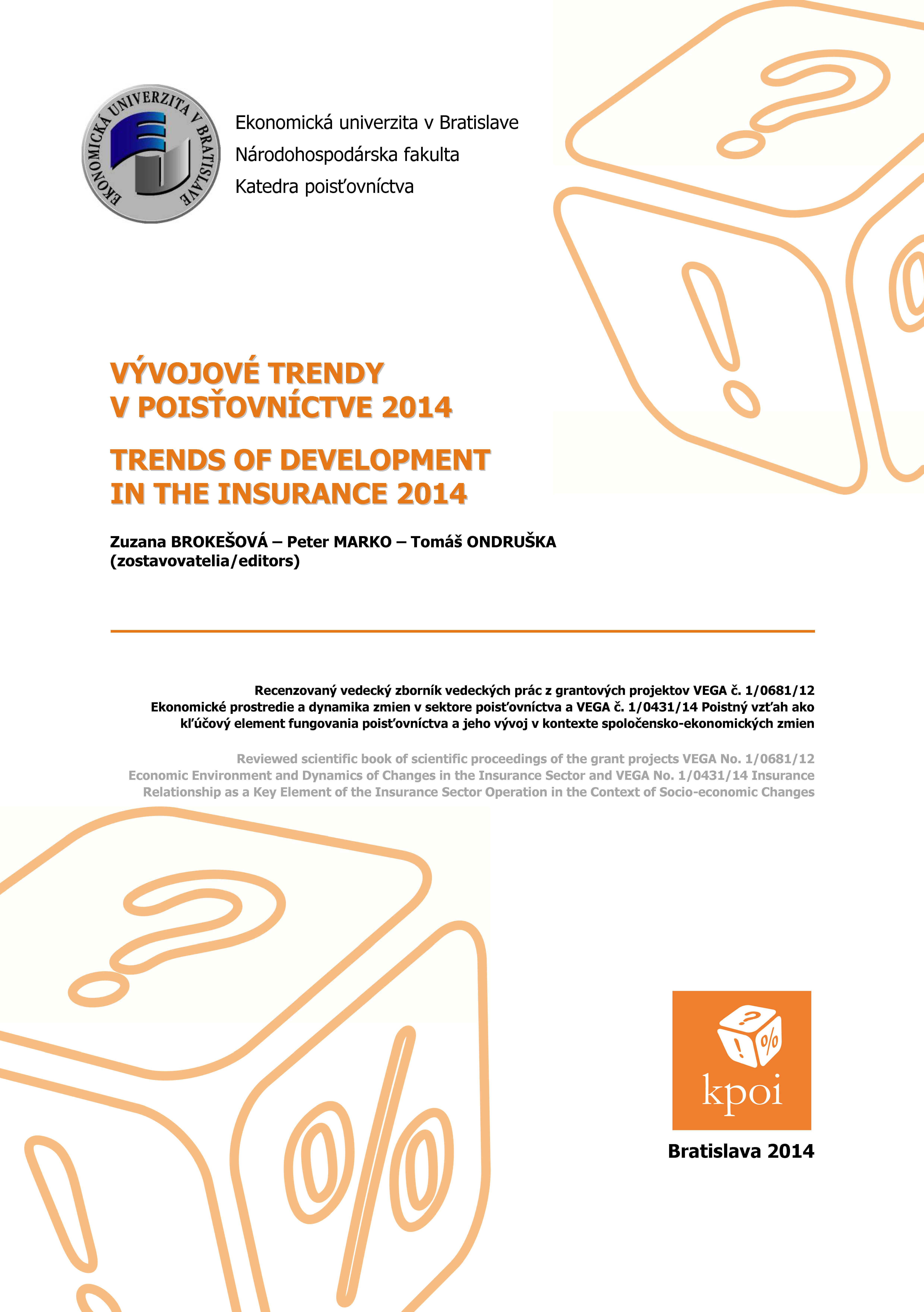 Title Vývojové trendy v poisťovníctve 2014 [elektronický zdroj] : recenzovaný vedecký zborník vedeckých prác Parallel title Trends of development in the insurance 2014 : reviewed scientific book of scientific proceedings Author info zostavovatelia/editors: Zuzana Brokešová, Peter Marko, Tomáš Ondruška, recenzenti/reviewers: Veronika Piovarčiová, Peter Marko Another authors Brokešová Zuzana (Compiler) EUBFNHKPO - Katedra poisťovníctva FNH Marko Peter (Compiler) EUBFNHKPO - Katedra poisťovníctva FNH Ondruška Tomáš (Compiler) EUBFNHKPO - Katedra poisťovníctva FNH Piovarčiová Veronika (Recenzent) EUBFNHKET - Katedra ekonómie FNH Marko Peter (Recenzent) EUBFNHKPO - Katedra poisťovníctva FNH Corporation Národohospodárska fakulta EU . Katedra poisťovníctva Issue data Bratislava : Vydavateľstvo EKONÓM , 2014. - CD-ROM [258 s., 12,9 AH] ISBN 978-80-225-3846-6 Výstup z projektu VEGA 1/0431/14 Poistný vzťah ako kľúčový prvok fungovania poisťovníctva v kontexte spoločensko-ekonomických zmien
