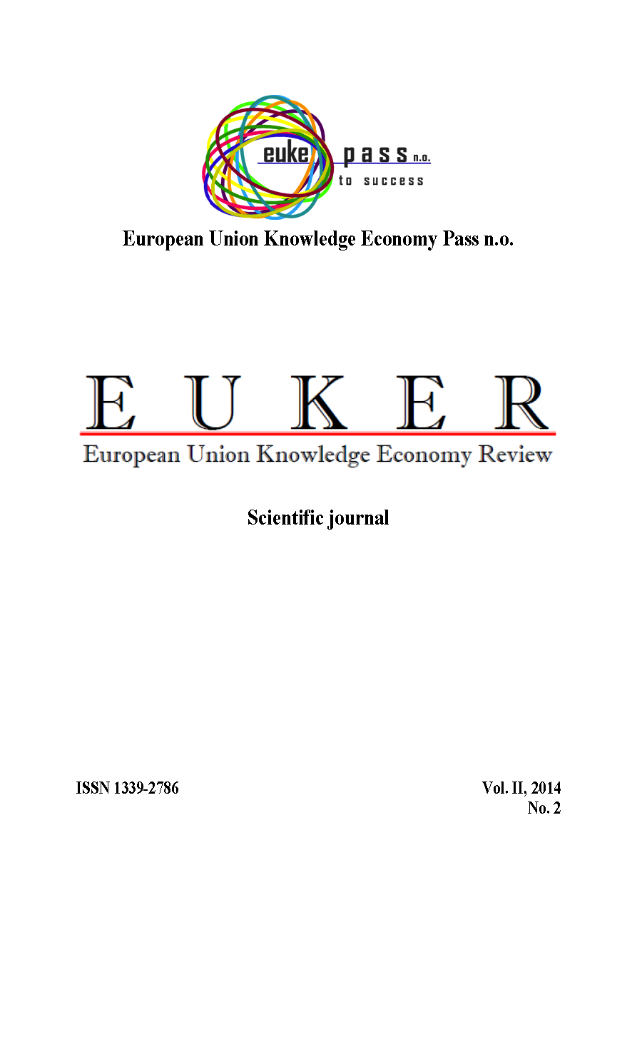 Title EUKER: European Union Knowledge Economy Review [elektronický zdroj] : scientific journal Issue data Vranov nad Topľou : European Union Knowledge Economy Pass ISSN 1339-2786 Year, No. Roč. 2, č. 2 (2014) Document kind electronic magazines Language Slovak Country of Edition Slovak Republic Database PERIODIKÁ - Prijaté čísla References - PERIODIKÁ - Súborný záznam periodika (2) - PUBLIKAČNÁ ČINNOSŤ