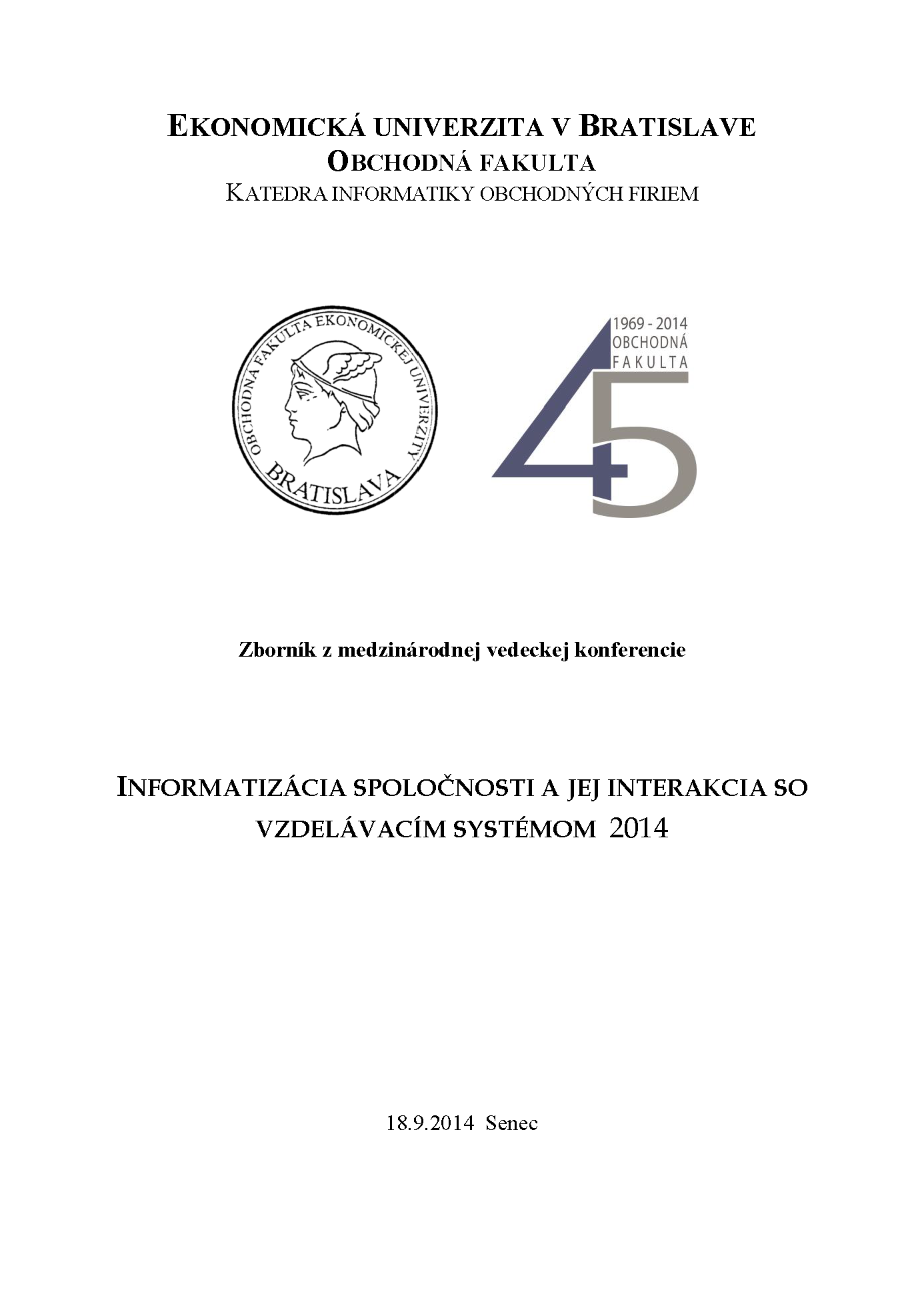 1. Title Informatizácia spoločnosti a jej interakcia so vzdelávacím systémom 2014 [elektronický zdroj] : zborník z medzinárodnej vedeckej konferencie : 18. 9. 2014 Senec