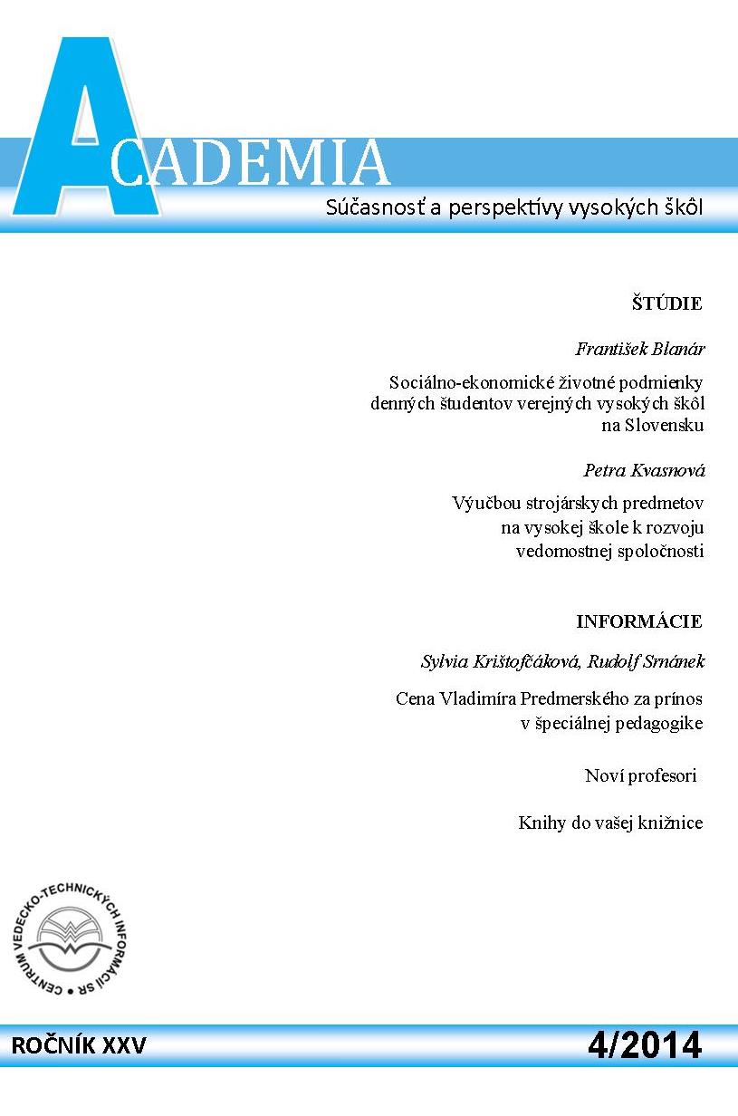 Title ACADEMIA : súčasnosť a perspektívy vysokých škôl Issue data Bratislava : Ústav informácií a prognóz školstva ISSN 1335-5864 Year, No. Roč. 25, č. 4 (2014) Document kind časopisy Language Slovak Country of Edition Slovak Republic Database PERIODIKÁ - Prijaté čísla References - PERIODIKÁ - Súborný záznam periodika - PERIODIKÁ - Zviazaný ročník periodika (2) - ARTICLES