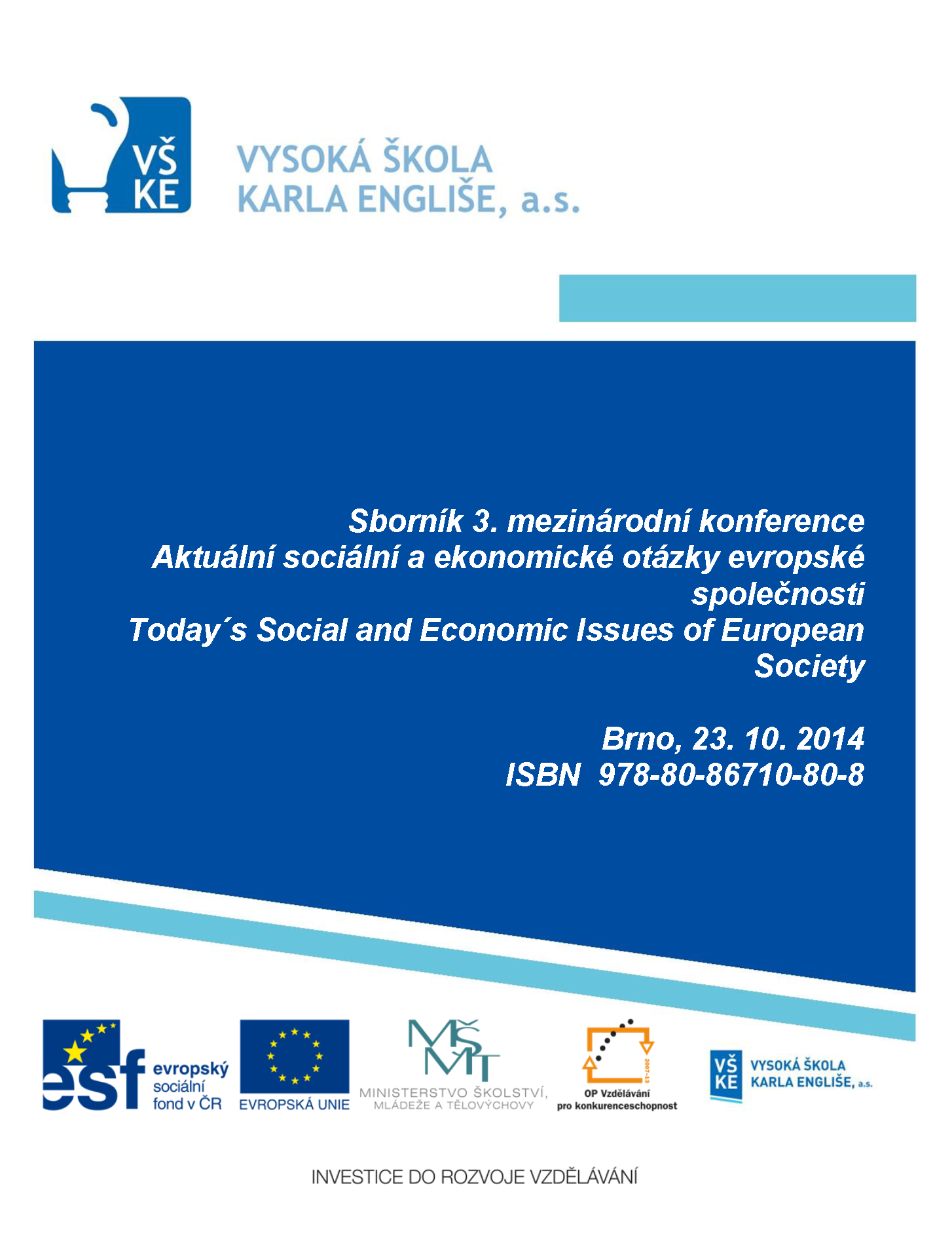 Title Aktuální sociální a ekonomické otázky evropské společnosti [elektronický zdroj] : sborník 3. mezinárodní konference : Brno, 23. 10. 2014 Parallel title Today´s social and economic issues of european society Action Aktuální sociální a ekonomické otázky evropské společnosti . Mezinárodní konference , 3. , Brno, Česko , 23.10.2014 Issue data [Brno] : [Vysoká škola Karla Engliše] , [2014]. - CD-ROM [62 s.] Issue 1. vyd. ISBN 978-80-86710-80-8 Document kind miscellanea Language Czech, English Country of Edition Czech Republic systematics 33 - Ekonomika. Ekonomické vedy Keywords vývoj hospodársky * prostredie ekonomické * globalizácia hospodárstva * právo * podnikanie medzinárodné * prostredie podnikateľské * manažment * migrácia * spoločnosť * vzdelávanie * etika podnikateľská * kultúra podniková * Európa Database BOOKS Copy count 1, currently available 0, at library only 1 References (2) - PUBLIKAČNÁ ČINNOSŤ Call number 883883 No. of Archival Copy E14 01781-001, originál dokumentu