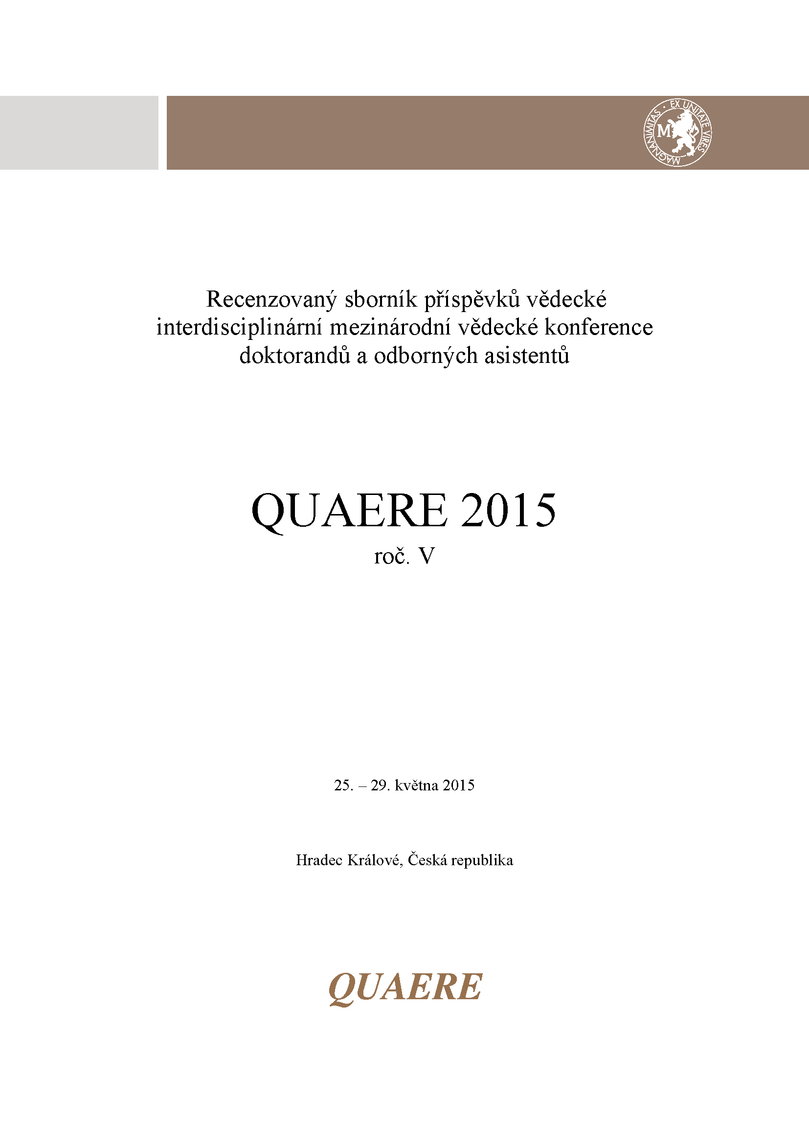 Title QUAERE 2015 [elektronický zdroj] : recenzovaný sborník příspěvků interdisciplinární mezinárodní vědecké konference doktorandů a odborných asistentů : roč. 5 : 25. – 29. května 2015, Hradec Králové, Česká republika Parallel title QUAERE 2015 : reviewed proceedings of the interdisciplinary scientific international conference for PhD students and assistants : vol. V Action QUAERE 2015 . Interdisciplinární mezinárodní vědecká konference doktorandů a odborných asistentů , 5. , Hradec Králové, Česko , 25.-29.5.2015 Issue data Hradec Králové : MAGNANIMITAS , 2015. - CD-ROM [1582 s.] ISBN 978-80-87952-10-8 Document kind miscellanea Language Czech, English Country of Edition Czech Republic systematics 33 - Ekonomika. Ekonomické vedy Keywords manažment * marketing * ekonómia * veda ekonomická * bankovníctvo * poisťovníctvo * správa verejná * vedy prírodné * psychológia * sociológia * pedagogika * informatika * technológie nové * priemysel strojársky * stavebníctvo Database BOOKS Copy count 2, currently available 1, at library only 1 References (8) - PUBLIKAČNÁ ČINNOSŤ Call number 885936, 887826 No. of Archival Copy E15 00539-001, originál dokumentu