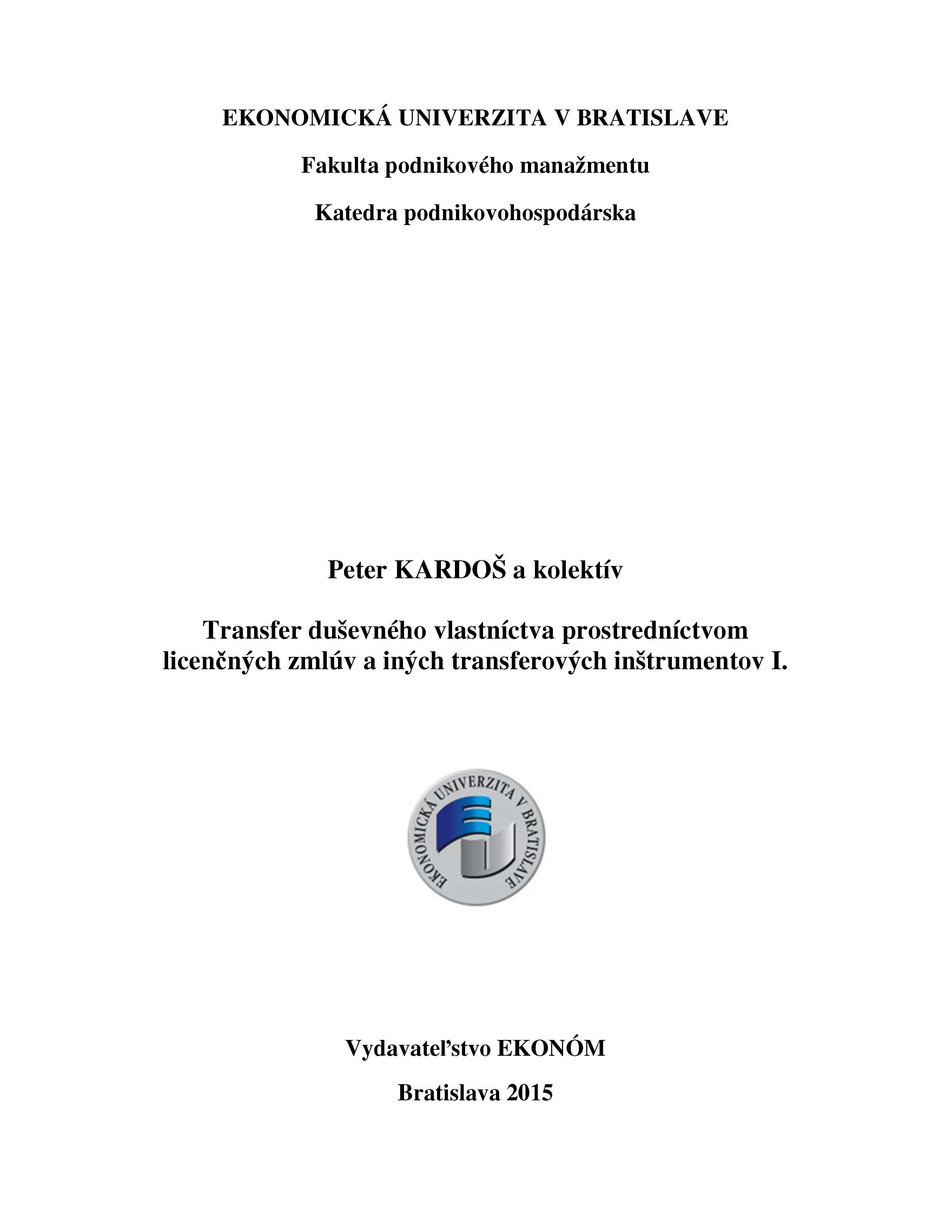 Title Transfer duševného vlastníctva prostredníctvom licenčných zmlúv a iných transferových inštrumentov I. [elektronický zdroj] : zborník vedeckých statí Author info Peter Kardoš a kolektív, redakčné práce: Slávka Šagátová, Miroslav Jakubec, Miroslav Uhliar, recenzovali: Andrej Kovalev, Marek Vážan Another authors Šagátová Slavka (Editor) EUBFPMKPO - Katedra podnikovohospodárska FPM Jakubec Miroslav (Editor) EUBFPMKPO - Katedra podnikovohospodárska FPM Uhliar Miroslav (Editor) EUBFPMKPO - Katedra podnikovohospodárska FPM Kovalev Andrej (Recenzent) EUBFPMKPO - Katedra podnikovohospodárska FPM Vážan Marek (Recenzent) Corporation Fakulta podnikového manažmentu EU . Katedra podnikovohospodárska Issue data Bratislava : Vydavateľstvo EKONÓM , 2015. - CD-ROM 94 s. [4,59 AH] Issue 1. vyd. ISBN 978-80-225-4204-3 Výstup z projektu VEGA 1/0264/15 Transfer duševného vlastníctva prostredníctvom licenčných zmlúv a iných transferových inštrumentov