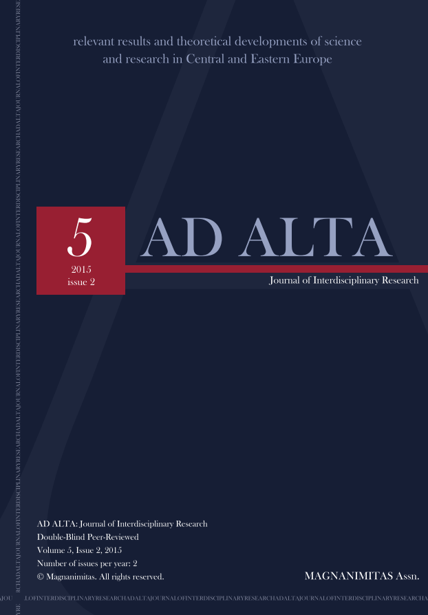 Title AD ALTA [elektronický zdroj] : journal of interdisciplinary research Issue data Hradec Králové : MAGNANIMITAS ISSN 2464-6733 Year, No. Vol. 5, no. 2 (2015) Document kind electronic magazines Language English Country of Edition Czech Republic Database PERIODIKÁ - Prijaté čísla References - PERIODIKÁ - Súborný záznam periodika (3) - ARTICLES