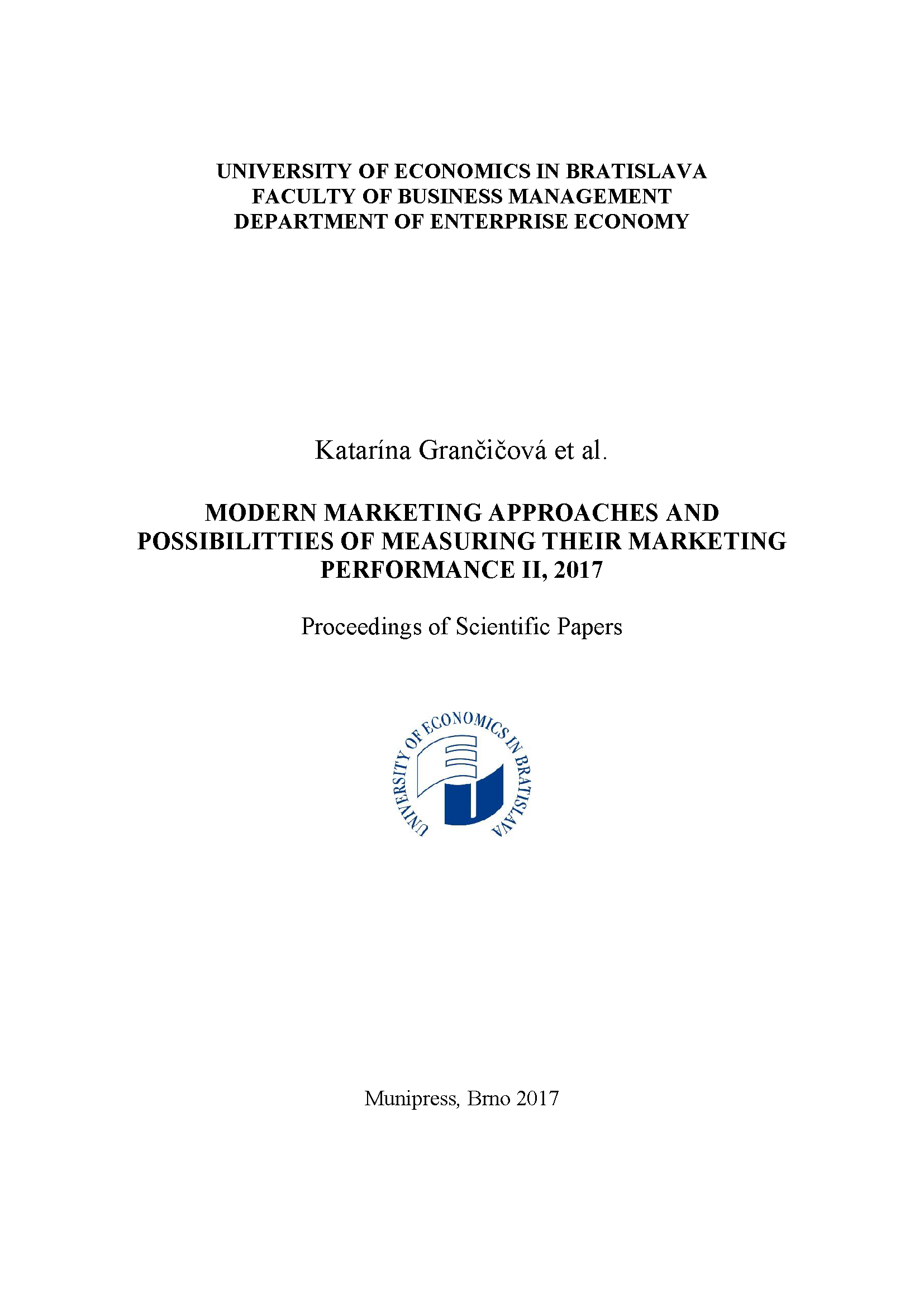 Modern marketing approaches and possibilitties of measuring their marketing performance II, 2017