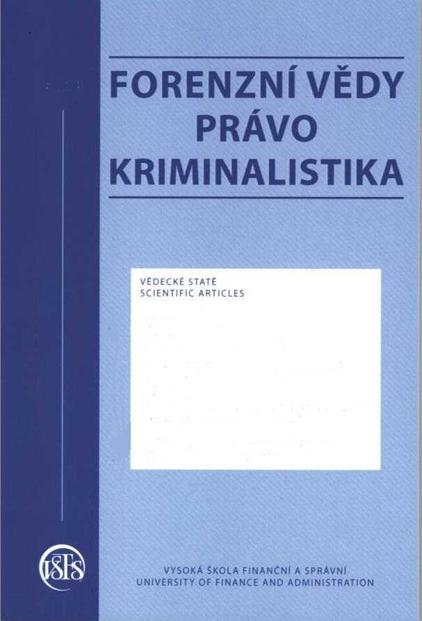 Title Forenzní vědy, právo, kriminalistika : Vědecké studie a analýzy: vědecký časopis : Scientific Studies and Analyses: Scientific Journal Issue data Praha : Vysoká škola finanční a správní ISSN 2533-4387 (print) , 2533-4395 (online) DOI http://dx.doi.org/10.37355/fvpk Note Od roku 2024 vychádza v online vezii. - Od roku 2023 vychádza 3x ročne. - V roku 2021 vyšlo č. 3 (2021) v online verzii. - Spracovaný v EKO-INDEX 2018- Periodicity 2-3x ročne Years of Consumption 2018- Years of Storage uchovávame trvale vo fonde SEK Document kind časopisy Language Czech, Slovak Country of Edition Czech Republic systematics 343 - Trestné právo Keywords kriminalita * činy trestné * činnosť trestná * zodpovednosť trestná * bezpečnosť národná * veda * právo trestné * súdy * prokuratúra Annotation Recenzovaný vedecký časopis so zameraním na právnu vedu, kriminalistiku, vybrané forenzné disciplíny, bezpečnostné vedy a prax. Jeho poslaním je zverejňovať výsledky vedeckej, odbornej a vedecko-výskumnej práce v uvedených odboroch. URL https://www.vsfs.cz/?id=2505-forenzni-vedy Database PERIODIKÁ - Súborný záznam periodika References (71) - ARTICLES References Súborný záznam: použite odkaz na záznam čísla alebo zväzku Numbers 2025: 1, 2, zvláštní číslo, 3 2024: 1, 2 2023: 1, 2, 3 2022: 1, 2 Bunches 2021: 1-2 2020: 1-2 2019: 1-2 2018: 1-2