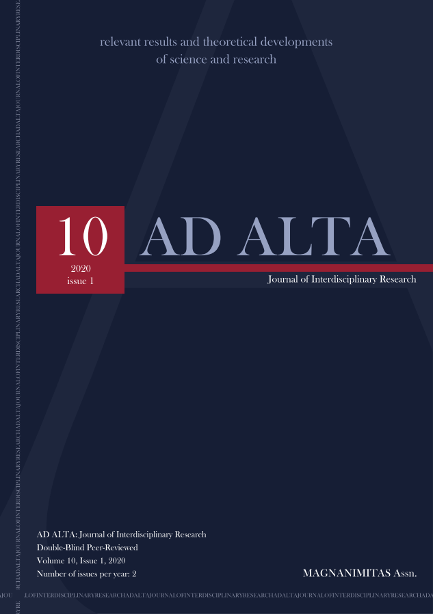 Title AD ALTA [elektronický zdroj] : Journal of Interdisciplinary Research Issue data Hradec Králové : MAGNANIMITAS ISSN 2464-6733 Year, No. Vol. 10, no. 1 (2020) Periodicals status Accepted (17.07.2020) Document kind electronic magazines Language English Country of Edition Czech Republic Database PERIODIKÁ - Prijaté čísla References - PERIODIKÁ - Súborný záznam periodika (1) - PUBLIKAČNÁ ČINNOSŤ (11) - ARTICLES
