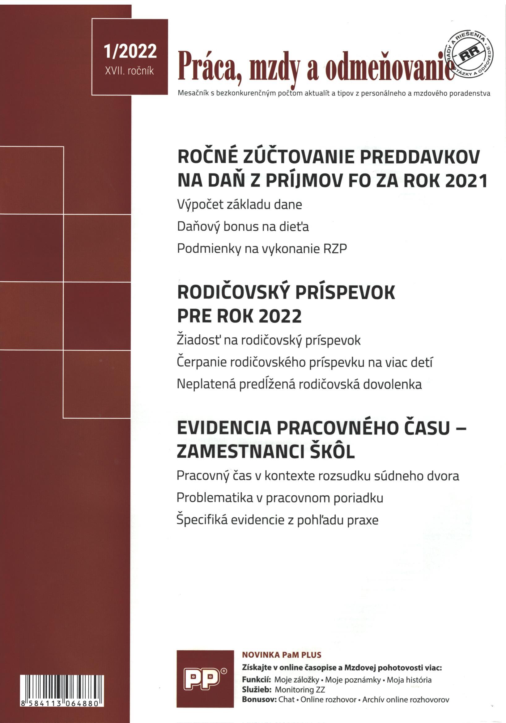 Title Práca, mzdy a odmeňovanie : mesačník s bezkonkurenčným počtom aktualít a tipov z personálneho a mzdového poradenstva Issue data Žilina : Poradca podnikateľa ISSN 1335-7115 Year, No. Roč. 17, č. 1 (2022) Periodicals status Accepted (08.02.2022) Document kind časopisy Language Slovak Country of Edition Slovak Republic Database PERIODIKÁ - Prijaté čísla Copy count 1, currently available 0, at library only 1 References - PERIODIKÁ - Súborný záznam periodika