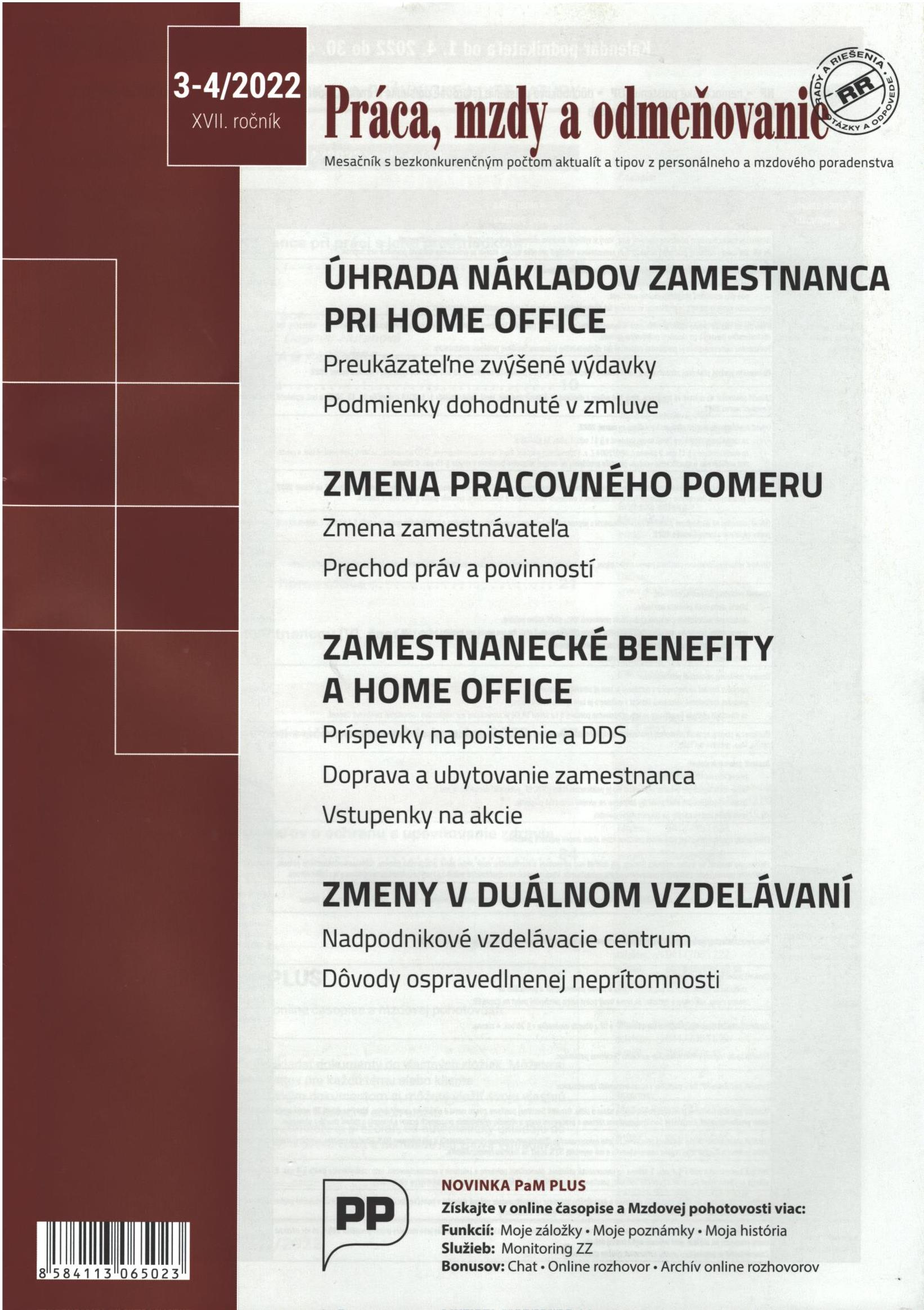 Title Práca, mzdy a odmeňovanie : mesačník s bezkonkurenčným počtom aktualít a tipov z personálneho a mzdového poradenstva Issue data Žilina : Poradca podnikateľa ISSN 1335-7115 Year, No. Roč. 17, č. 3-4 (2022) Periodicals status Accepted (11.04.2022) Document kind časopisy Language Slovak Country of Edition Slovak Republic Database PERIODIKÁ - Prijaté čísla Copy count 1, currently available 0, at library only 1 References - PERIODIKÁ - Súborný záznam periodika