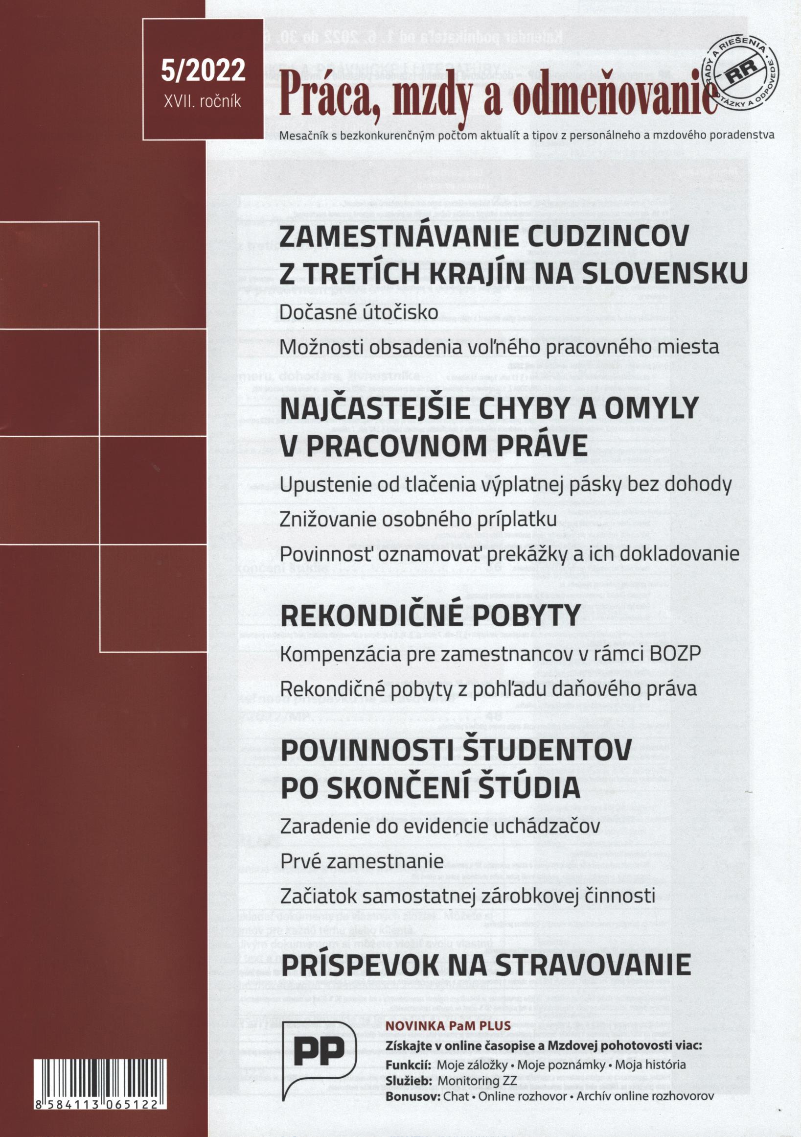 Title Práca, mzdy a odmeňovanie : mesačník s bezkonkurenčným počtom aktualít a tipov z personálneho a mzdového poradenstva Issue data Žilina : Poradca podnikateľa ISSN 1335-7115 Year, No. Roč. 17, č. 5 (2022) Periodicals status Accepted (03.06.2022) Document kind časopisy Language Slovak Country of Edition Slovak Republic Database PERIODIKÁ - Prijaté čísla Copy count 1, currently available 0, at library only 1 References - PERIODIKÁ - Súborný záznam periodika