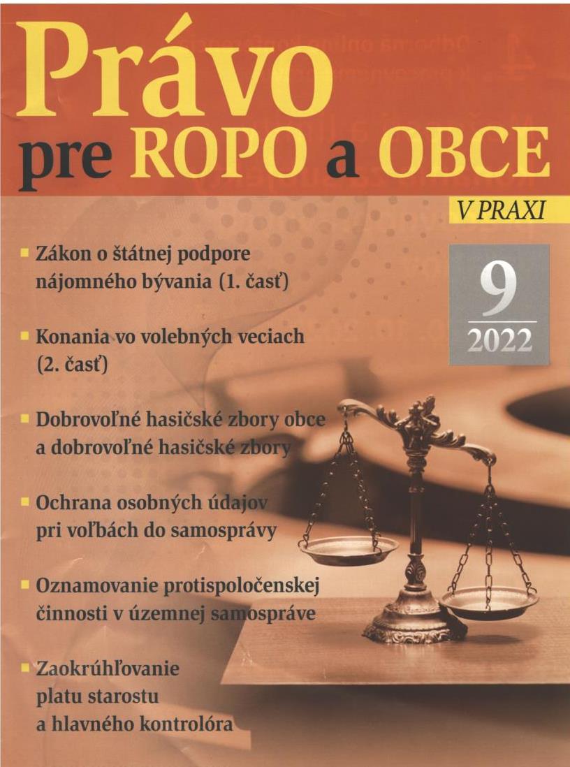 Title Právo pre ROPO a obce v praxi : mesačník plný odborných informácií pre rozpočtové, príspevkové organizácie a obce Issue data Bratislava : Wolters Kluwer ISSN 1337-7523 Year, No. Roč. 15, č. 9 (2022) Periodicals status Accepted (03.10.2022) Document kind časopisy Language Slovak Country of Edition Slovak Republic Database PERIODIKÁ - Prijaté čísla Copy count 1, currently available 0, at library only 1 References - PERIODIKÁ - Súborný záznam periodika (5) - ARTICLES