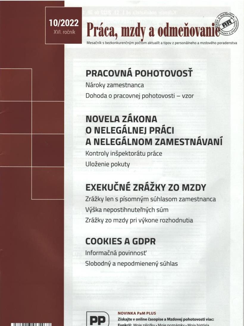Title Práca, mzdy a odmeňovanie : mesačník s bezkonkurenčným počtom aktualít a tipov z personálneho a mzdového poradenstva Issue data Žilina : Poradca podnikateľa ISSN 1335-7115 Year, No. Roč. 17, č. 10 (2022) Periodicals status Accepted (22.11.2022) Document kind časopisy Language Slovak Country of Edition Slovak Republic Database PERIODIKÁ - Prijaté čísla Copy count 1, currently available 0, at library only 1 References - PERIODIKÁ - Súborný záznam periodika