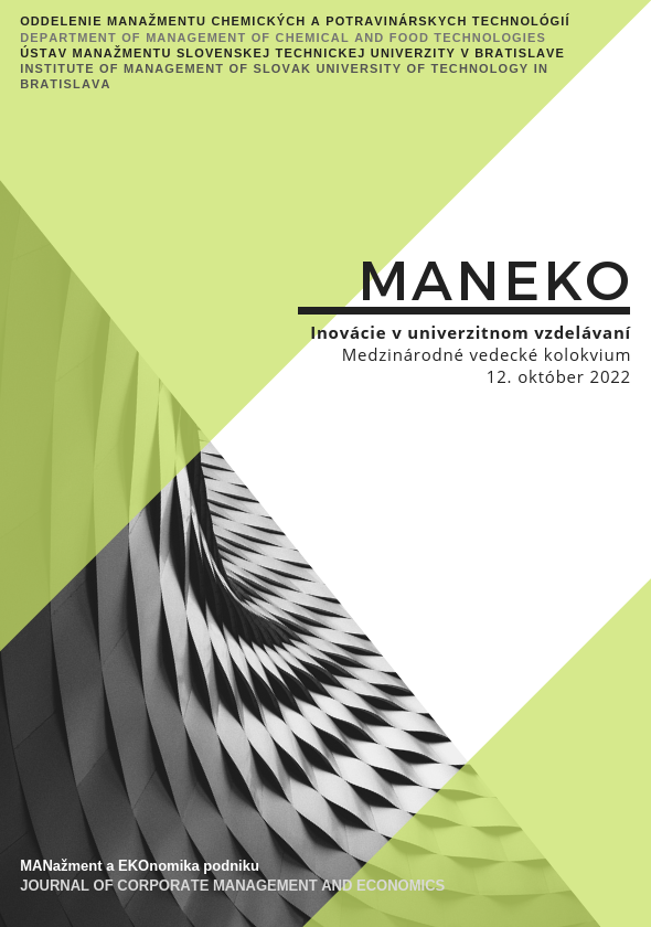 Title MANEKO [elektronický zdroj] : časopis o ekonomike a manažmente priemyselných podnikov : [vedecký časopis] Parallel title Journal of Corporate Management and Economics : [Scientific Journal] Issue data Bratislava : SPEKTRUM STU ISSN 1338-5127 Year, No. Roč. 14, č. Špeciálne číslo (2022) Periodicals status Accepted (20.01.2023) Document kind electronic magazines Language Slovak Country of Edition Slovak Republic Database PERIODIKÁ - Prijaté čísla References - PERIODIKÁ - Súborný záznam periodika (1) - PUBLIKAČNÁ ČINNOSŤ (4) - ARTICLES