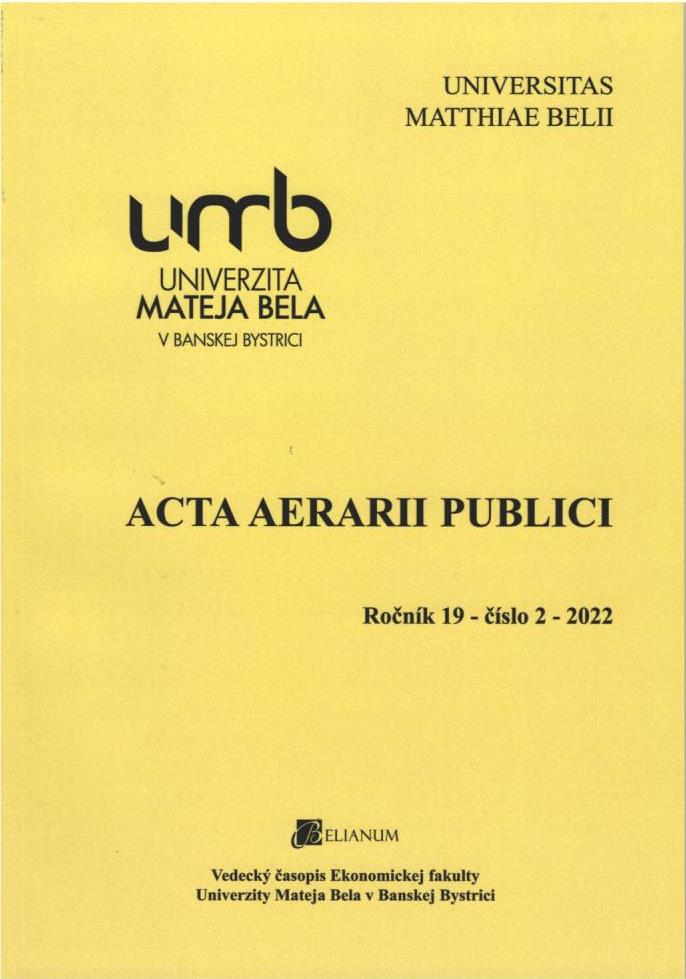 Title Acta aerarii publici : vedecký časopis Ekonomickej fakulty Univerzity Mateja Bela v Banskej Bystrici Parallel title Acta aerarii publici: Scientific Journals published by the Faculty of Economics, Matej Bel University, Banská Bystrica, Slovakia Issue data Banská Bystrica : Belianum ISSN 1336-8818 Year, No. Roč. 19, č. 2 (2022) Periodicals status Accepted (13.02.2023) Document kind časopisy Language Slovak Country of Edition Slovak Republic Database PERIODIKÁ - Prijaté čísla Copy count 2, currently available 0, at library only 2 References - PERIODIKÁ - Súborný záznam periodika (7) - ARTICLES