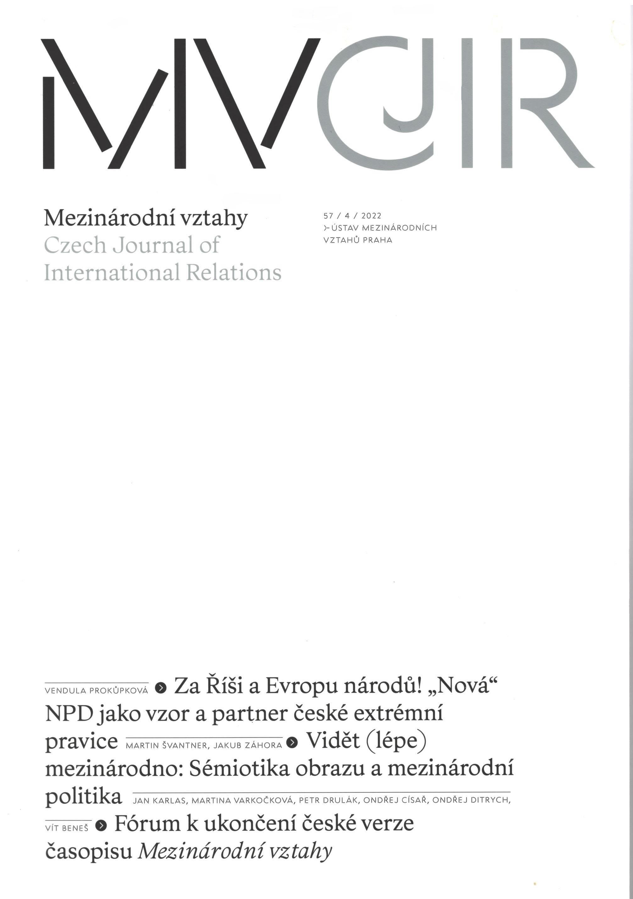 Title Mezinárodní vztahy Parallel title Czech Journal of International Relations Issue data Praha : Institute of International Relations ISSN 0323-1844 Year, No. Roč. 57, č. 4 (2022) Periodicals status Accepted (16.03.2023) Document kind časopisy Language English Country of Edition Czech Republic Database PERIODIKÁ - Prijaté čísla Copy count 2, currently available 0, at library only 2 References - PERIODIKÁ - Súborný záznam periodika (2) - ARTICLES