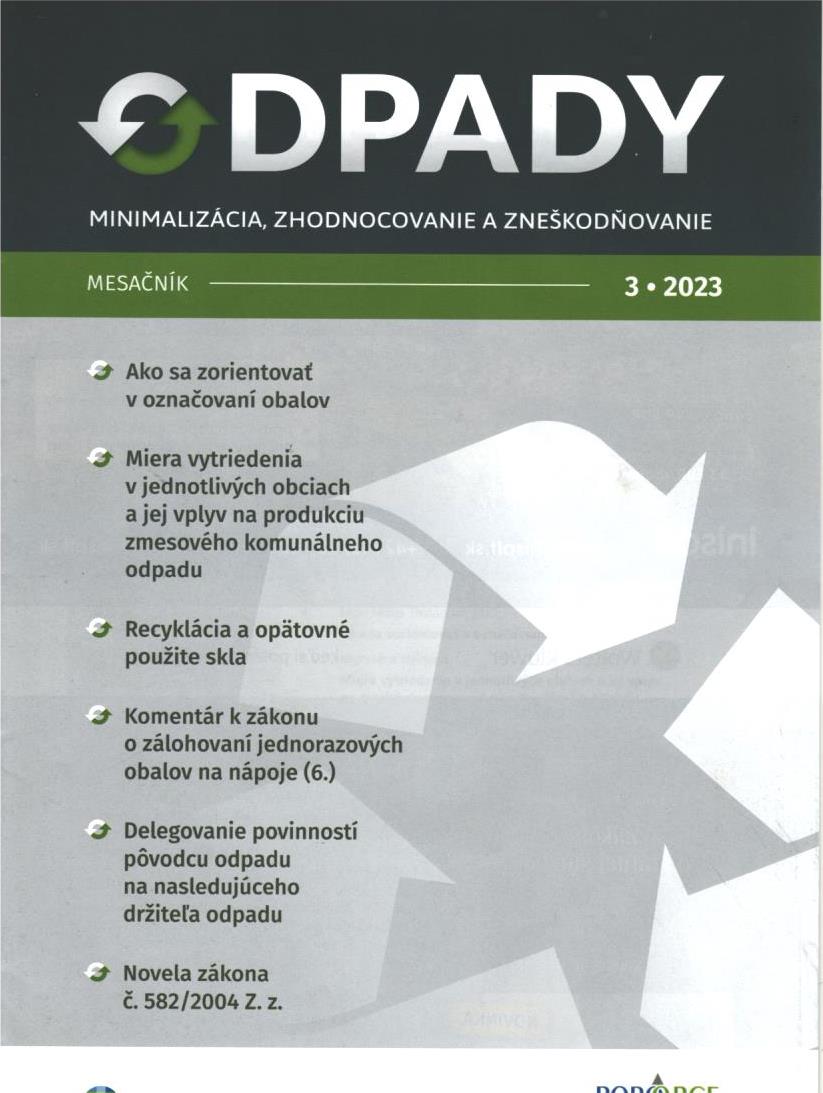 Title Odpady : minimalizácia, zhodnocovanie a zneškodňovanie : odborný mesačník Issue data Bratislava : Wolters Kluwer SR ISSN 1335-7808 Year, No. Roč. 23, č. 3 (2023) Periodicals status Accepted (24.03.2023) Document kind časopisy Language Slovak Country of Edition Slovak Republic Database PERIODIKÁ - Prijaté čísla Copy count 1, currently available 0, at library only 1 References - PERIODIKÁ - Súborný záznam periodika (2) - ARTICLES