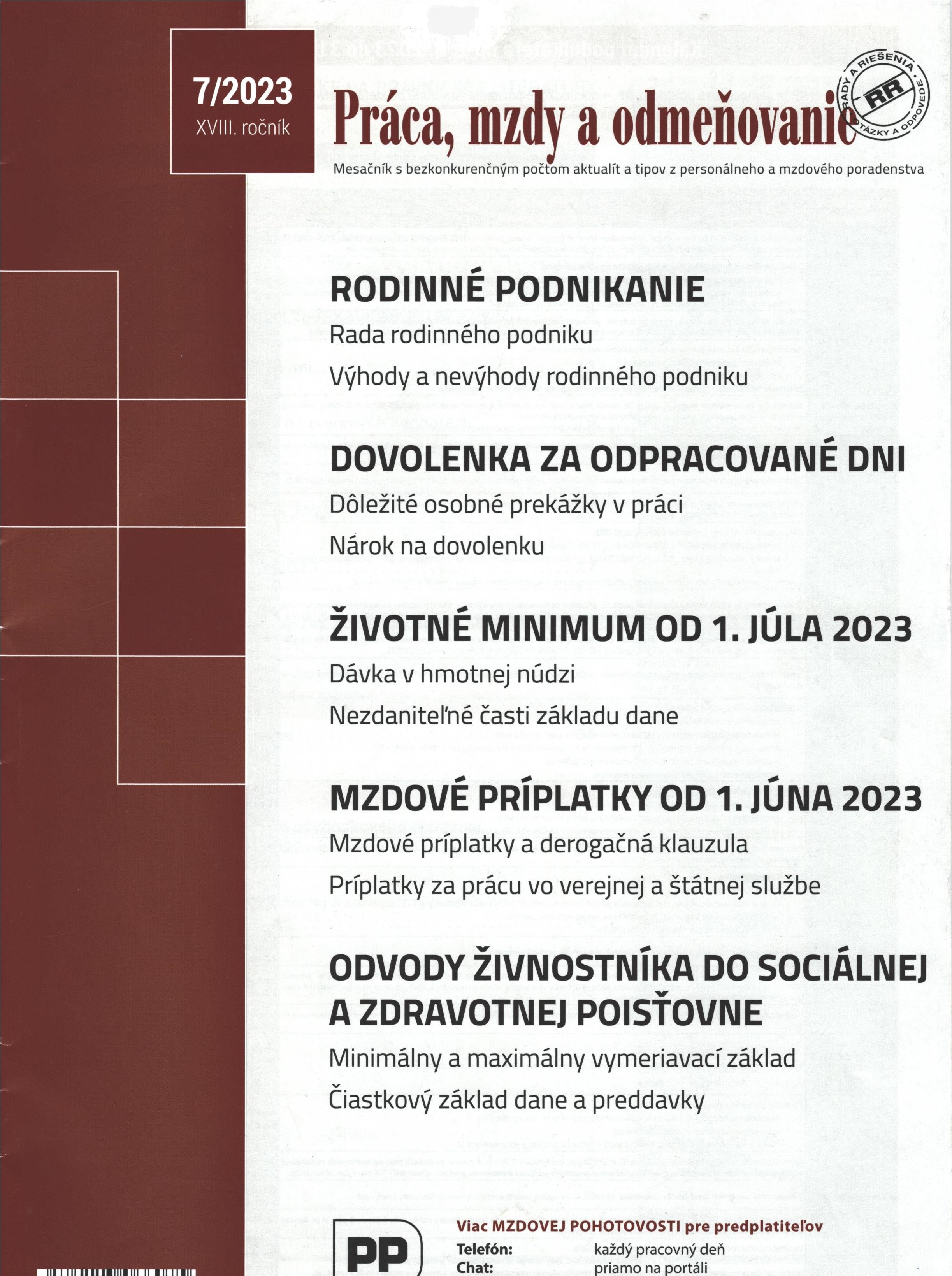 Title Práca, mzdy a odmeňovanie : mesačník s bezkonkurenčným počtom aktualít a tipov z personálneho a mzdového poradenstva Issue data Žilina : Poradca podnikateľa ISSN 1335-7115 Year, No. Roč. 18, č. 7 (2023) Periodicals status Accepted (23.08.2023) Document kind časopisy Language Slovak Country of Edition Slovak Republic Database PERIODIKÁ - Prijaté čísla Copy count 1, currently available 0, at library only 1 References - PERIODIKÁ - Súborný záznam periodika