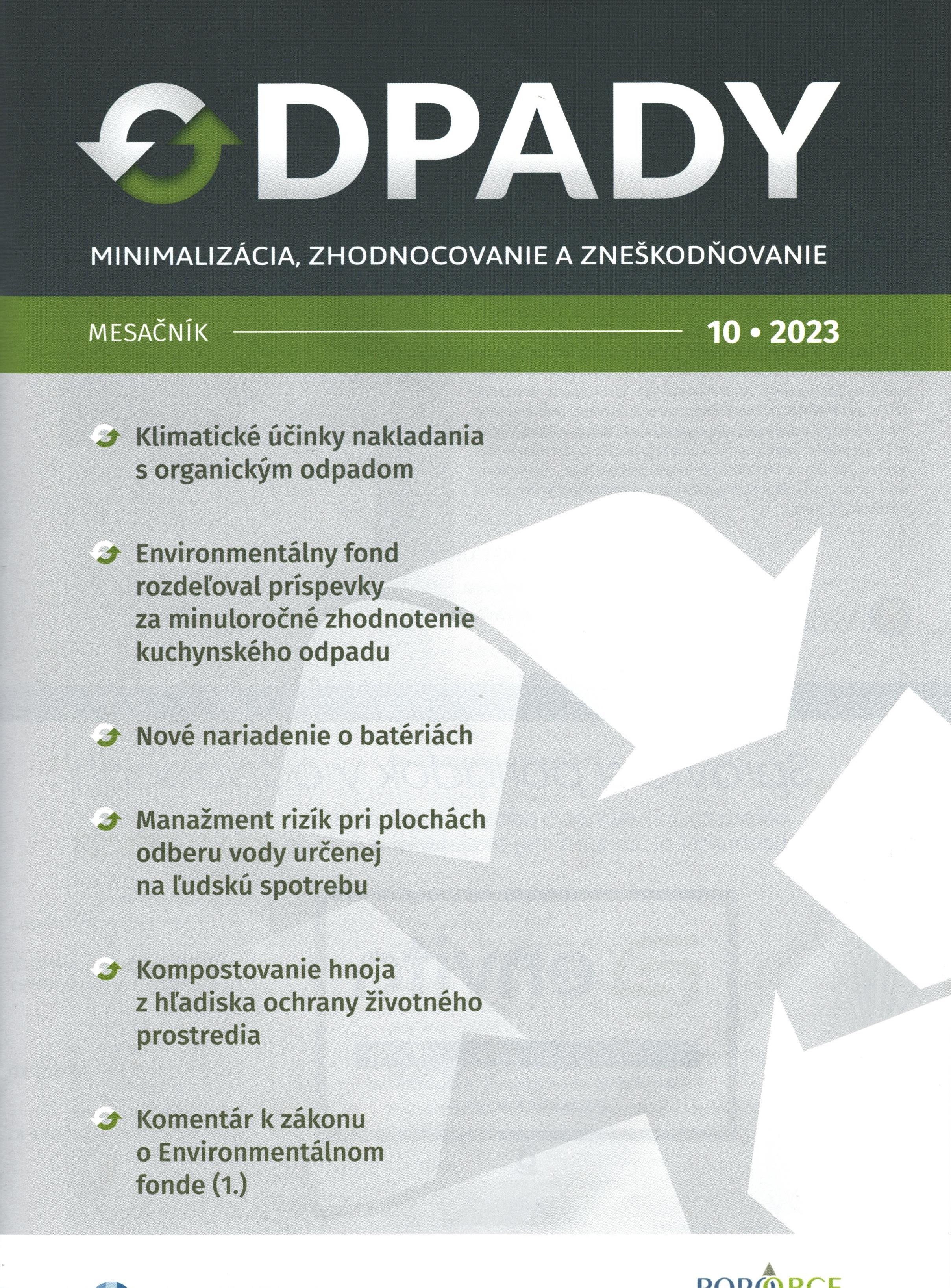 Title Odpady : minimalizácia, zhodnocovanie a zneškodňovanie : odborný mesačník Issue data Bratislava : Wolters Kluwer SR ISSN 1335-7808 Year, No. Roč. 23, č. 10 (2023) Periodicals status Accepted (25.10.2023) Document kind časopisy Language Slovak Country of Edition Slovak Republic Database PERIODIKÁ - Prijaté čísla Copy count 1, currently available 0, at library only 1 References - PERIODIKÁ - Súborný záznam periodika (2) - ARTICLES