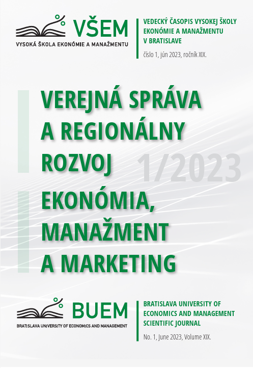 Title Verejná správa a regionálny rozvoj : ekonómia, manažment a marketing Parallel title Public Administration and Regional Development Issue data Bratislava : Vysoká škola ekonómie a manažmentu verejnej správy v Bratislave ISSN 1337-2955 Year, No. Roč. 19, č. 1 (2023) Periodicals status Accepted (04.12.2023) Document kind časopisy Language Slovak Country of Edition Slovak Republic Database PERIODIKÁ - Prijaté čísla References - PERIODIKÁ - Súborný záznam periodika (11) - ARTICLES