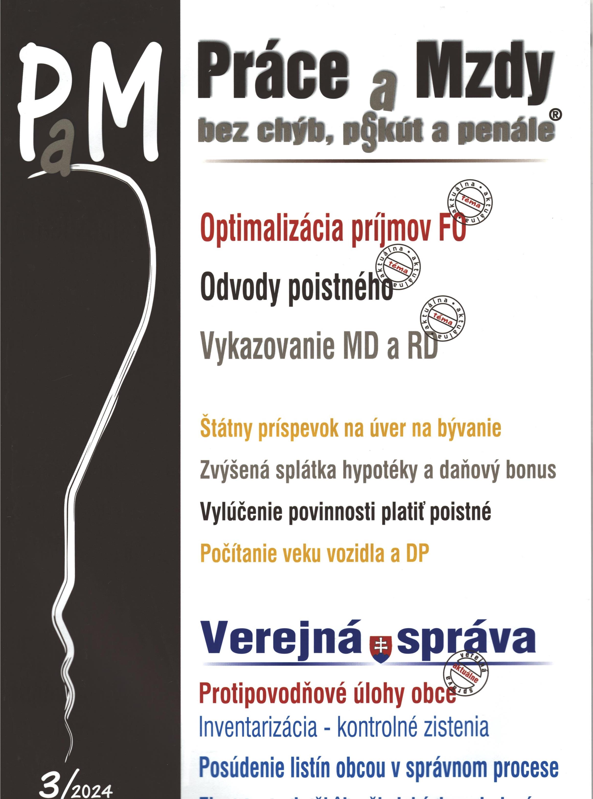 Title Práce a Mzdy : bez chýb, pokút a penále Issue data Žilina : Poradca ISSN 1337-060X Year, No. Roč. 19, č. 3 (2024) Periodicals status Accepted (26.01.2024) Document kind časopisy Language Slovak Country of Edition Slovak Republic Database PERIODIKÁ - Prijaté čísla Copy count 4, currently available 0, at library only 4 References - PERIODIKÁ - Súborný záznam periodika (18) - ARTICLES