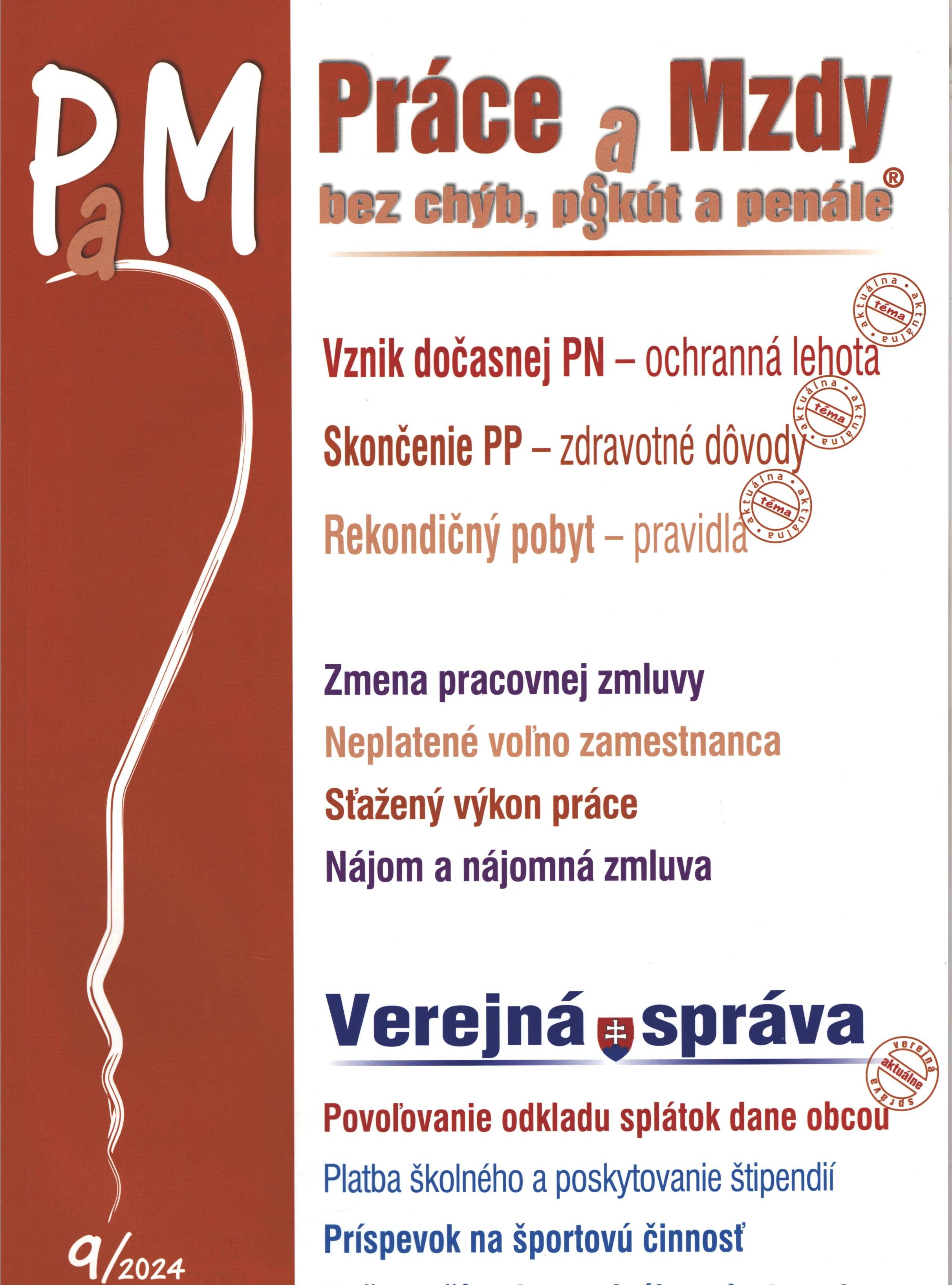 Title Práce a Mzdy : bez chýb, pokút a penále Issue data Žilina : Poradca ISSN 1337-060X Year, No. Roč. 19, č. 9 (2024) Periodicals status Accepted (24.06.2024) Document kind časopisy Language Slovak Country of Edition Slovak Republic Database PERIODIKÁ - Prijaté čísla Copy count 4, currently available 0, at library only 4 References - PERIODIKÁ - Súborný záznam periodika (16) - ARTICLES