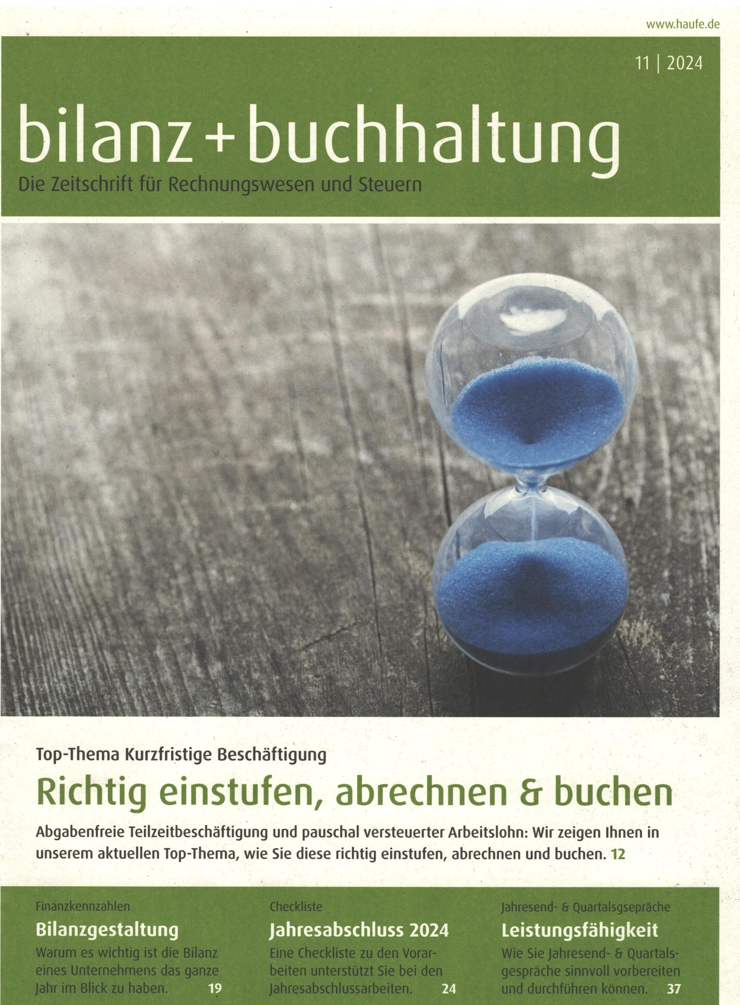 Title Bilanz + Buchhaltung : Die Zeitschrift für Rechnungswesen und Steuern Issue data Freiburg : Haufe-Lexware GmbH ISSN 0930-0597 Year, No. Jg. 71, Hf. 11 (2024) Periodicals status Accepted (15.11.2024) Document kind časopisy Language German Country of Edition Germany Database PERIODIKÁ - Prijaté čísla Copy count 1, currently available 0, at library only 1 References - PERIODIKÁ - Súborný záznam periodika