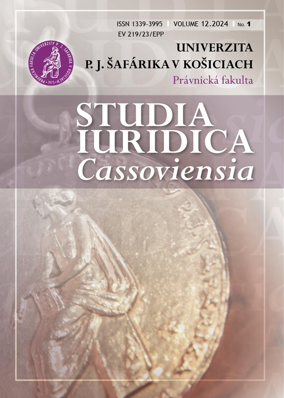 Title Studia Iuridica Cassoviensia [elektronický zdroj] : elektronický vedecký časopis Issue data Košice : Univerzita Pavla Jozefa Šafárika v Košiciach ISSN 1339-3995 Year, No. Roč. 12, č. 1 (2024) Periodicals status Accepted (10.12.2024) Language Slovak Country of Edition Slovak Republic Database PERIODIKÁ - Prijaté čísla References - PERIODIKÁ - Súborný záznam periodika (2) - ARTICLES