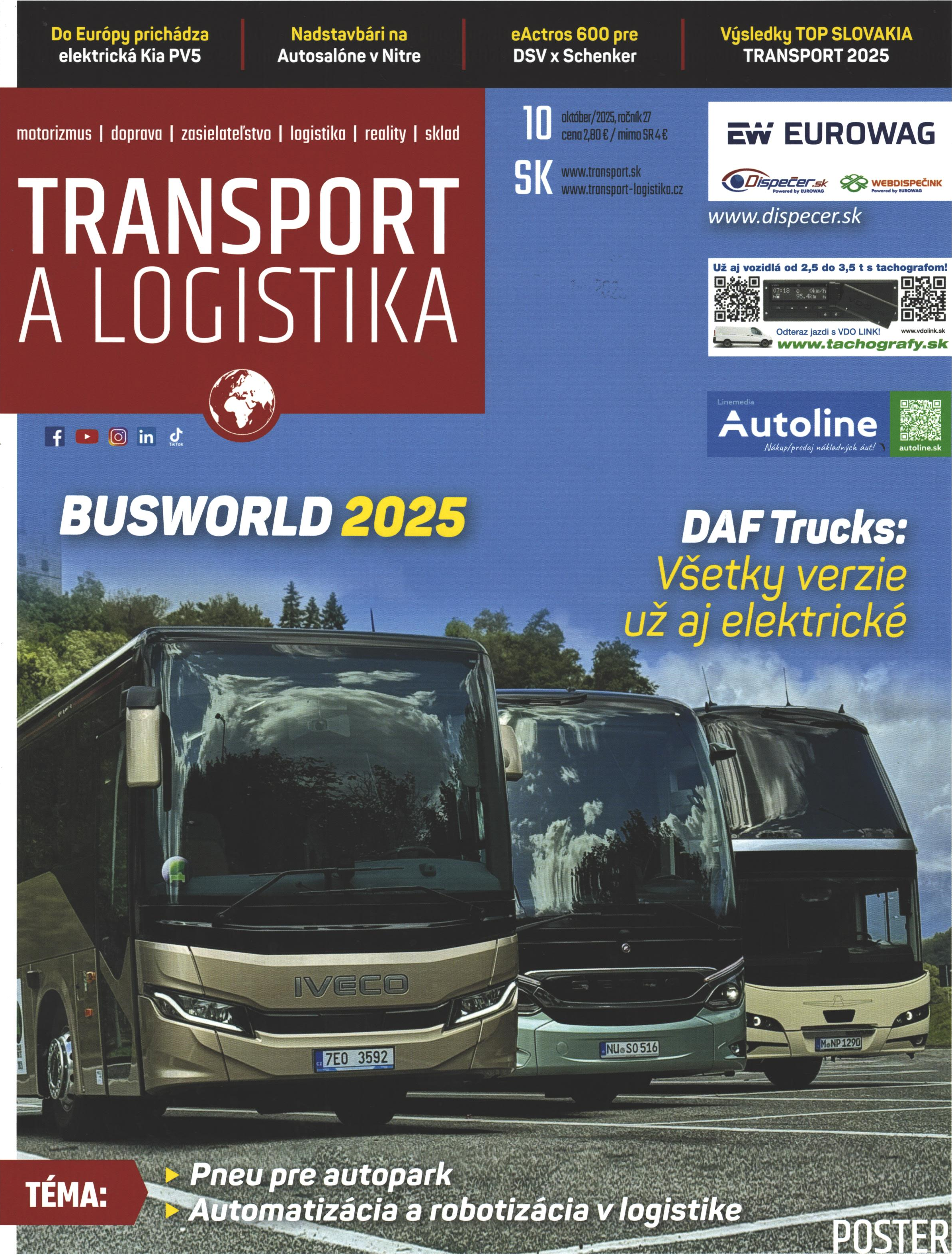 Title Transport a logistika : mesačník pre dopravu, zasielateľstvo, logistiku a veľkoobchod : TOP magazín Issue data Bratislava : Transpress/Luxur Media SK ISSN 1338-3809 Year, No. Roč. 27, č. 10 (2025) Periodicals status Accepted (23.10.2025) Document kind časopisy Language Slovak Country of Edition Slovak Republic Database PERIODIKÁ - Prijaté čísla Copy count 2, currently available 0, at library only 2 References - PERIODIKÁ - Súborný záznam periodika