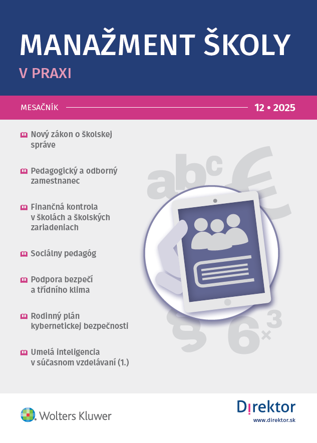 Title Manažment školy v praxi : [odborný mesačník] Issue data Bratislava : Wolters Kluwer ISSN 1336-9849 Year, No. Roč. 20, č. 12 (2025) Periodicals status Accepted (09.12.2025) Document kind časopisy Language Slovak Country of Edition Slovak Republic Database PERIODIKÁ - Prijaté čísla Copy count 1, currently available 0, at library only 1 References - PERIODIKÁ - Súborný záznam periodika