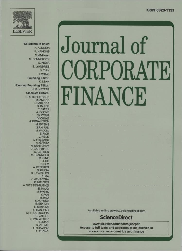 Title Journal of Corporate Finance Issue data Amsterdam : Elsevier Science ISSN 0929-1199 (print) , 1872-6313 (online) Note Registrovaný: Current Contents Connect. - Registrovaný: Web of Science. - Registrovaný: Scopus Periodicity 6x ročne Years of Consumption 1995-2024 Years of Storage uchovávame trvale vo fonde SEK Document kind časopisy Language English Country of Edition Netherlands systematics 336 - Financie. Verejné financie. Colníctvo. Bankovníctvo. Peňažníctvo Keywords právo * podnik * zmluvy * účtovníctvo * financie podnikové * hospodárstvo podniku finančné URL https://www.sciencedirect.com/journal/journal-of-corporate-finance Database PERIODIKÁ - Súborný záznam periodika References (2) - PUBLIKAČNÁ ČINNOSŤ References Súborný záznam: použite odkaz na záznam čísla alebo zväzku Numbers 2024: February 2023: April, June, August, October, December 2022: February, April, June, August, October, December Bunches 2021: April, August, February, June, October-December 2020: August-October, February-June 2019: February-August, October-December 2018: February-December 2017: August-December, February-June 2016: February-December 2015: February-December 2014: February-December 2013: February-December 2012: 1-5 2011: 1-5 2010: 1-5 2009: 1-5 2008: 1-5 2007: 1-5 2006: 1-5 2005: 1-5 2004: 1-5 2003: 1-5 2002: 1-4 2001: 1-4 2000: 1-4 1999: 1-4 1998: 1-4 1997: 1-4 1995/1996: 1, 2