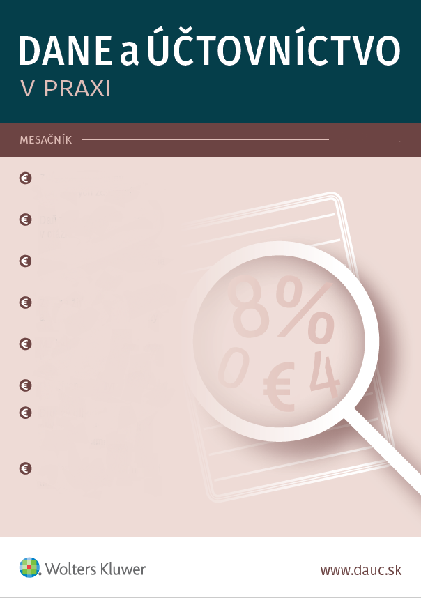 Title Dane a účtovníctvo v praxi : odborný mesačník Issue data Bratislava : Wolters Kluwer ISSN 1335-7034 (print) , 1338-175X (online) Note Do r. 2022 vychádzal s podnázvom: Mesačník plný informácií z oblasti daní, práva a účtovníctva. - Spracovaný v EKO-INDEX 2000- Periodicity 12x ročne Years of Consumption 2000- Years of Storage uchovávame trvale vo fonde SEK Document kind časopisy Language Slovak Country of Edition Slovak Republic systematics 336.2 - Dane. Poplatky. Dávky. Odvody Keywords dane * odvody * poplatky správne * účtovníctvo * právo daňové URL https://www.dauc.sk/ Database PERIODIKÁ - Súborný záznam periodika References (303) - PUBLIKAČNÁ ČINNOSŤ (1000+) - ARTICLES References Súborný záznam: použite odkaz na záznam čísla alebo zväzku Numbers 2025: 1, 2, 3, 4, 5, 6, 7-8, 9, 10, 11, 12 2024: 1, 2, 3, 4, 5, 6, 7-8, 9, 10, 11, 12 2023: 1, 2, 3, 4, 5, 6, 7-8, 9, 10, 11, 12 2022: 1, 2, 3, 4, 5, 6, 7-8, 9, 10, 11, 12 Bunches 2021: 1-6, 7-12 2020: 1-6, 7-12 2019: 1-6, 7-12 2018: 1-6, 7-12 2017: 1-6, 7-12 2016: 1-6, 7-12 2015: 1-6, 7-12 2014: 1-6 + 1 príl., 7-8-12 2013: 1-6, 7-12 + 1 príl. 2012: 1-6, 7-12 2011: 1-6, 7-12 2010: 1-6, 7-12 2009: 7-12, 1-6 2008: 1-6, 7-12 2007: 1-6, 7-12 2006: 1-6, 7-12 2005: 1-6, 7-12 2004: 1-6, 7-12 2003: 1-12 2002: 1-6, 7-12 2001: 1-6, 7-12 2000: 10-12 Availability Časopis je dostupný aj v systéme ASPI