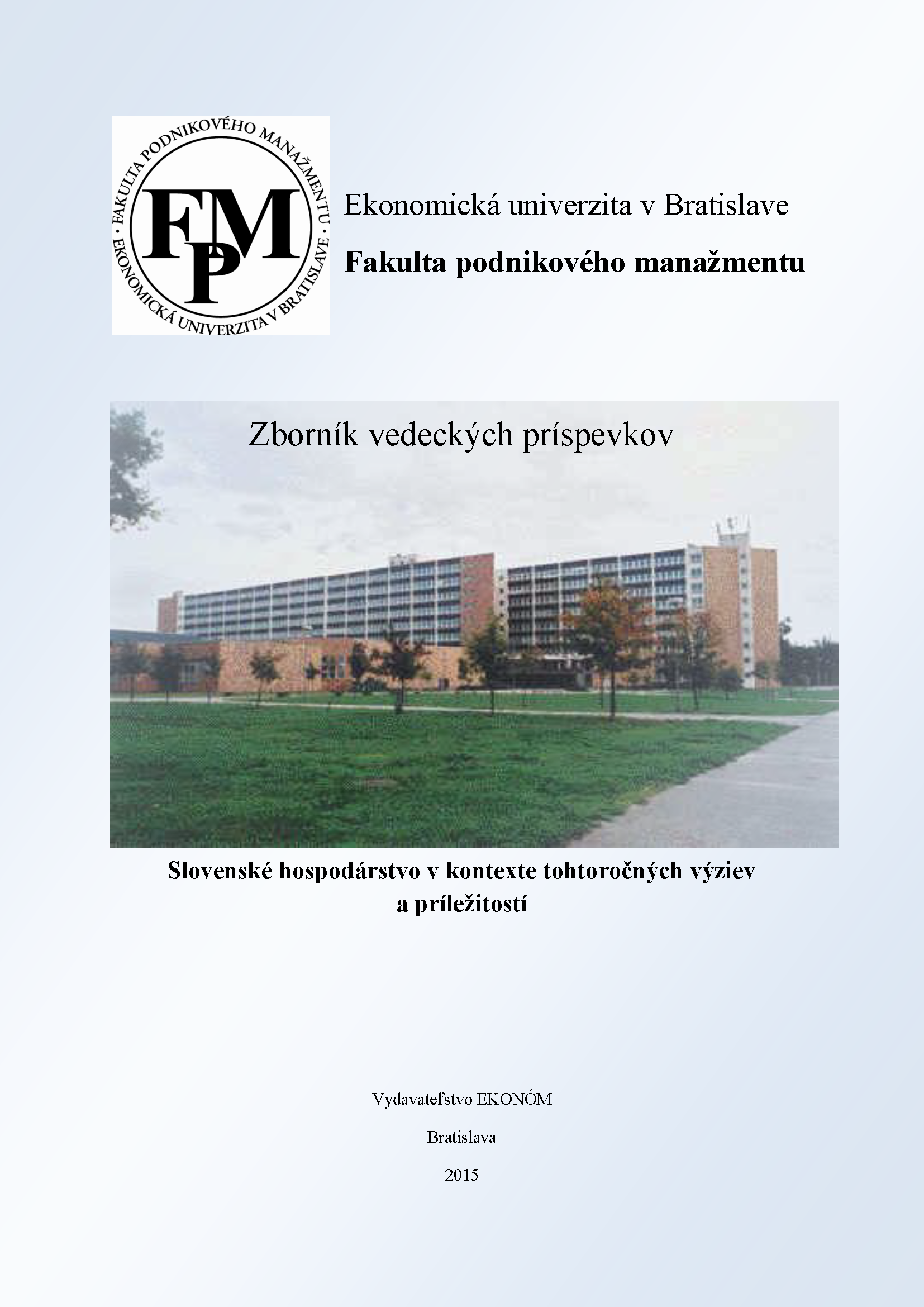 Title Slovenské hospodárstvo v kontexte tohtoročných výziev a príležitostí : zborník vedeckých príspevkov[elektronický zdroj] Author info redakčné a zostaviteľské práce: Miroslav Kmeťko, Pavel Škriniar, Peter Badura, recenzenti: Anna Polednáková, Pavol Poklemba Another authors Kmeťko Miroslav (Compiler) EUBFPMKPF - Katedra podnikových financií FPM Škriniar Pavel (Compiler) EUBFPMKPF - Katedra podnikových financií FPM Badura Peter (Compiler) EUBFPMKPF - Katedra podnikových financií FPM Polednáková Anna (Recenzent) EUBFPMKPF - Katedra podnikových financií FPM Poklemba Pavol (Recenzent) Corporation Ekonomická univerzita v Bratislave . Fakulta podnikového manažmentu Issue data Bratislava : Vydavateľstvo EKONÓM , 2015. - CD-ROM [128 s., 9,64 AH] Issue 1. vyd. ISBN 978-80-225-4054-4 Document kind miscellanea Language Slovak Country of Edition Slovak Republic systematics 338.1 - Hospodárska situácia Keywords situácia hospodárska * trh * logistika zelená * logistika reverzná * financie * účtovníctvo * majetok nehmotný * vlastníctvo duševné * vzdelávanie * rast hospodársky * zadlženosť * korupcia * motivácia pracovná * prognózovanie * financovanie podnikov * podnik malý * podnik stredný * fondy finančné * investori * zdroje ľudské * trh kapitálový * analýza finančná * investície finančné Public work category Editorial and reported works (bibliographies, magazines, encyclopedies, catalogs, dictionaries, year-books...) Database PUBLIKAČNÁ ČINNOSŤ Copy count 1, currently available 0, at library only 1 References (16) - PUBLIKAČNÁ ČINNOSŤ (6) - ARTICLES Call number 884180 No. of Archival Copy E15 00225-001, originál dokumentu