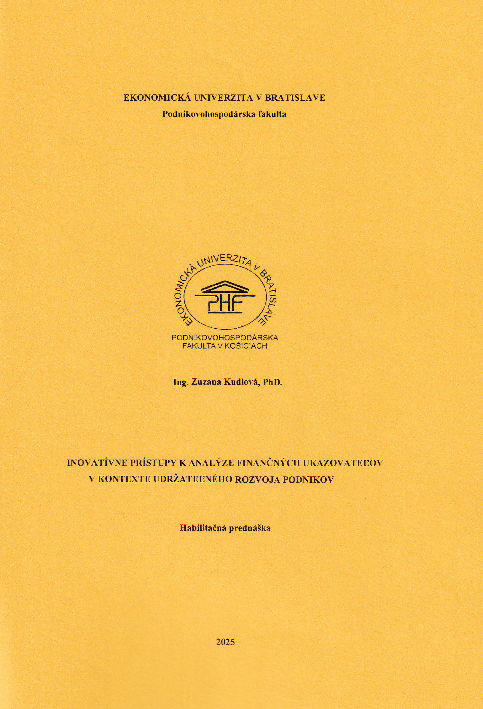 Title Inovatívne prístupy k analýze finančných ukazovateľov v kontexte udržateľného rozvoja podnikov : habilitačná prednáška Author info Zuzana Kudlová Author Kudlová Zuzana EUBPHFKRP - Katedra finančného riadenia podniku PHF Corporation Ekonomická univerzita v Bratislave . Podnikovohospodárska fakulta so sídlom v Košiciach Issue data Bratislava : Vydavateľstvo EKONÓM , 2025. - 76 s. Issue 1. vydanie ISBN 978-80-225-5220-2 Document kind prehľady (obzory) Language Slovak Country of Edition Slovak Republic systematics 658.15 - Finančné hospodárstvo v podniku Keywords analýza finančná * ukazovatele finančné * ukazovatele ekonomické * ukazovatele sociálne * rozvoj podniku Database BOOKS Copy count 2, currently available 0, at library only 2 Call number 931531, 931532