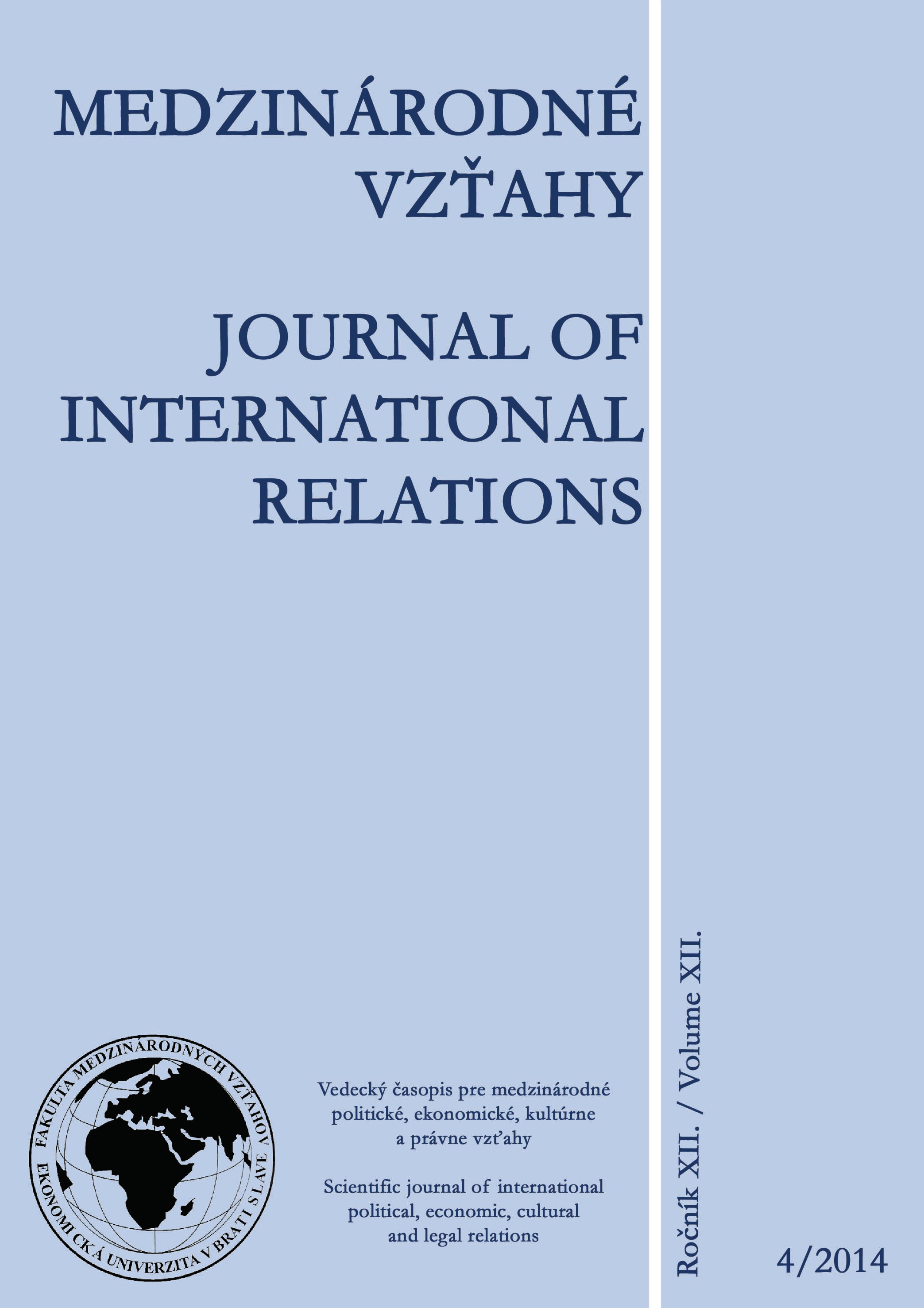 Title Medzinárodné vzťahy : vedecký časopis pre medzinárodné politické, ekonomické, kultúrne a právne vzťahy Issue data Bratislava : Fakulta medzinárodných vzťahov EU ISSN 1336-1562 Year, No. Roč. 12, č. 4 (2014) Document kind časopisy Language Slovak Country of Edition Slovak Republic Database PERIODIKÁ - Prijaté čísla References - PERIODIKÁ - Súborný záznam periodika - PERIODIKÁ - Zviazaný ročník periodika (3) - PUBLIKAČNÁ ČINNOSŤ (3) - ARTICLES