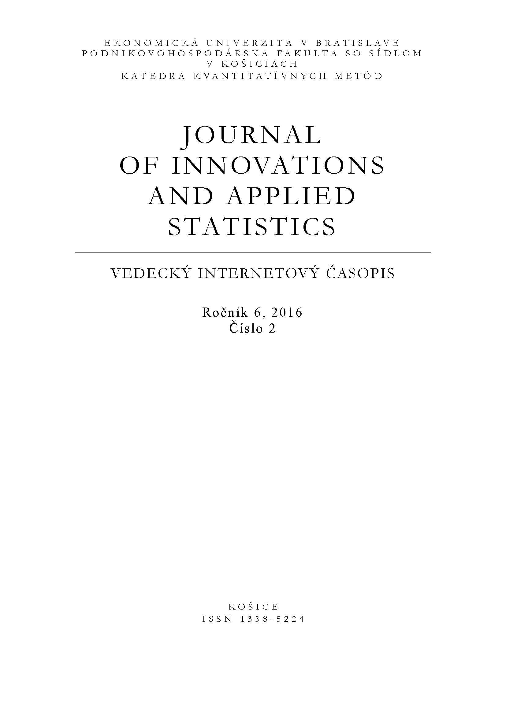 - 2016 ,č. 2. Journal of innovations and applied statistics : vedecký internetový časopis [elektronický zdroj]. Košice : Katedra hospodárskej informatiky a matematiky PHF EU, 2016. ISSN 1338-5224.