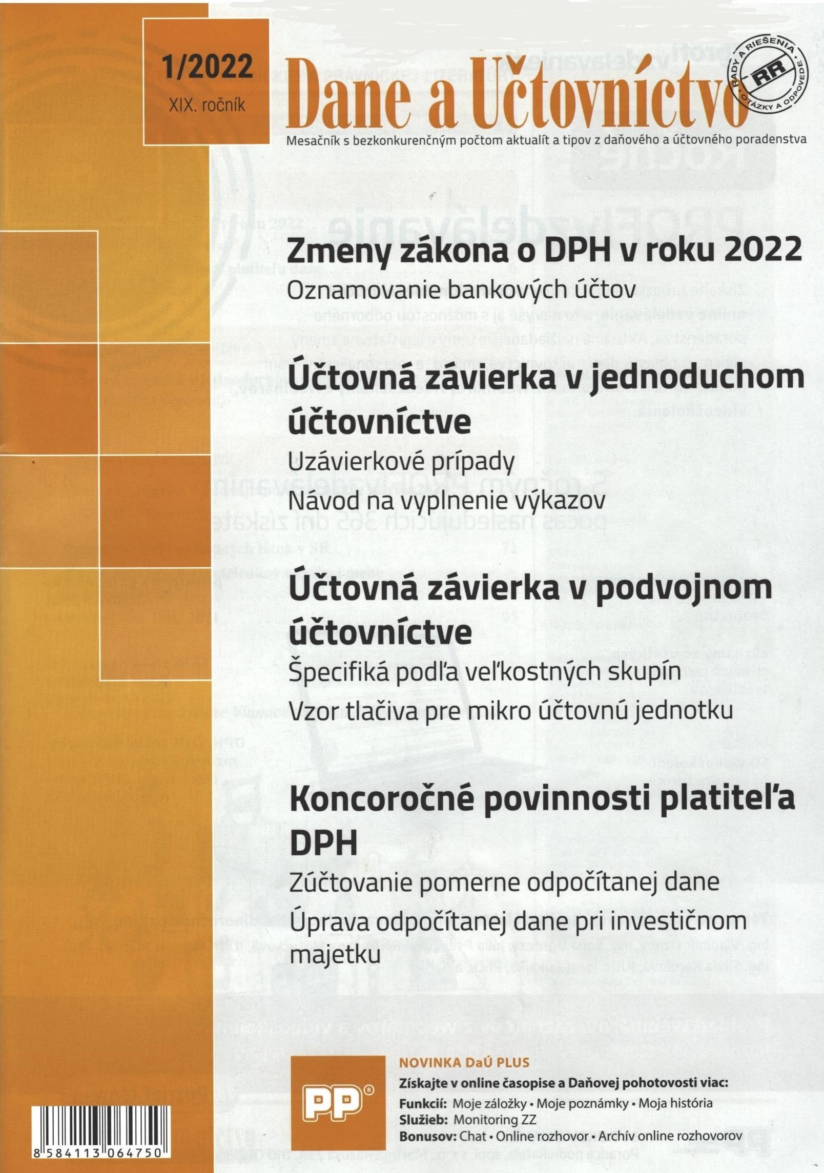 2022 ,č. 1. Dane a účtovníctvo : rady a riešenia : mesačník s bezkonkurenčným počtom aktualít a tipov z daňového a účtovného poradenstva. Žilina : Poradca podnikateľa, 2022. ISSN 1336-426X [Copy count : 2, currently available 0, at library only 2]