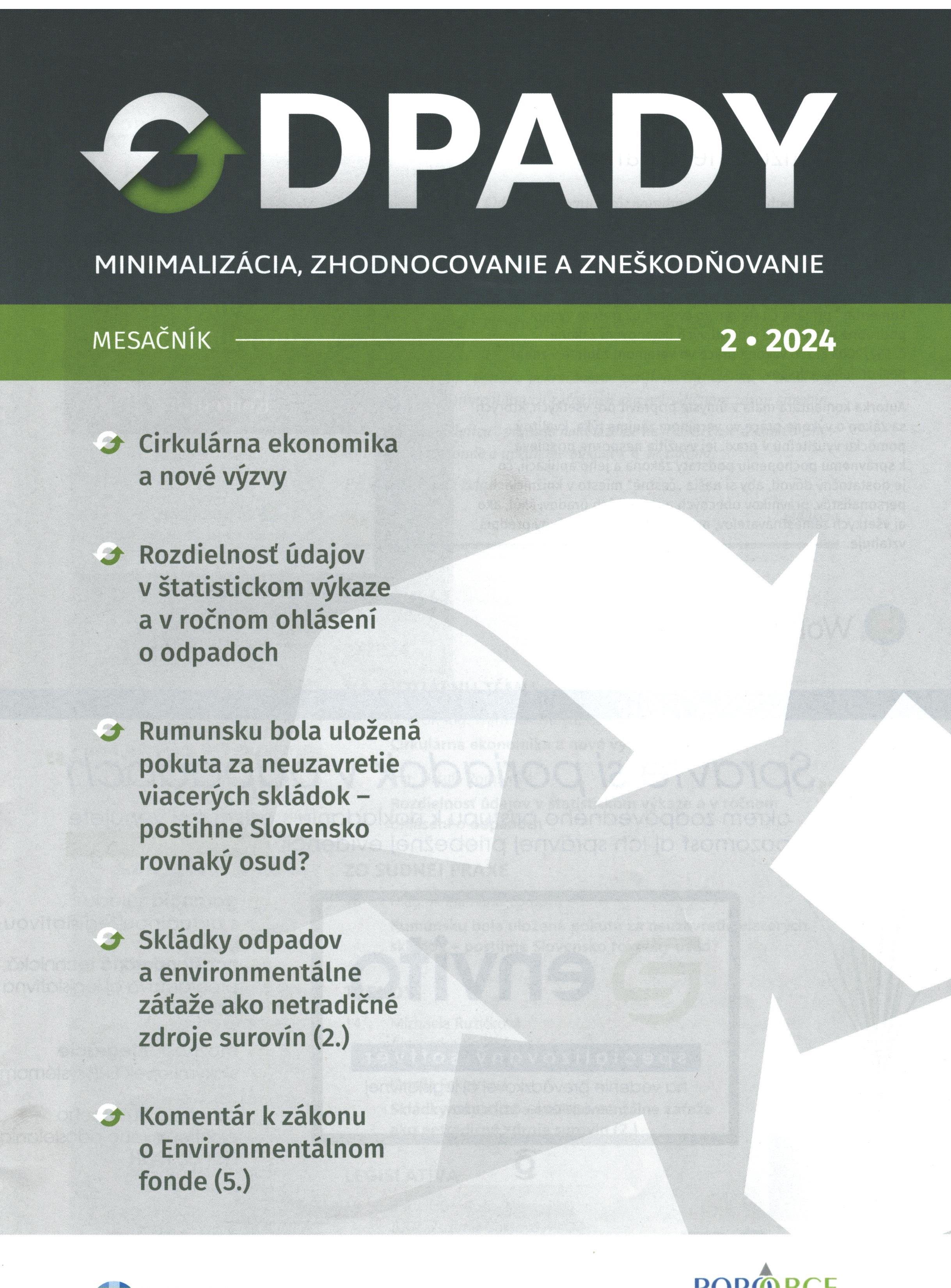 Title Odpady : minimalizácia, zhodnocovanie a zneškodňovanie : odborný mesačník Issue data Bratislava : Wolters Kluwer SR ISSN 1335-7808 Year, No. Roč. 24, č. 2 (2024) Periodicals status Accepted (23.02.2024) Document kind časopisy Language Slovak Country of Edition Slovak Republic Database PERIODIKÁ - Prijaté čísla Copy count 1, currently available 0, at library only 1 References - PERIODIKÁ - Súborný záznam periodika (2) - ARTICLES