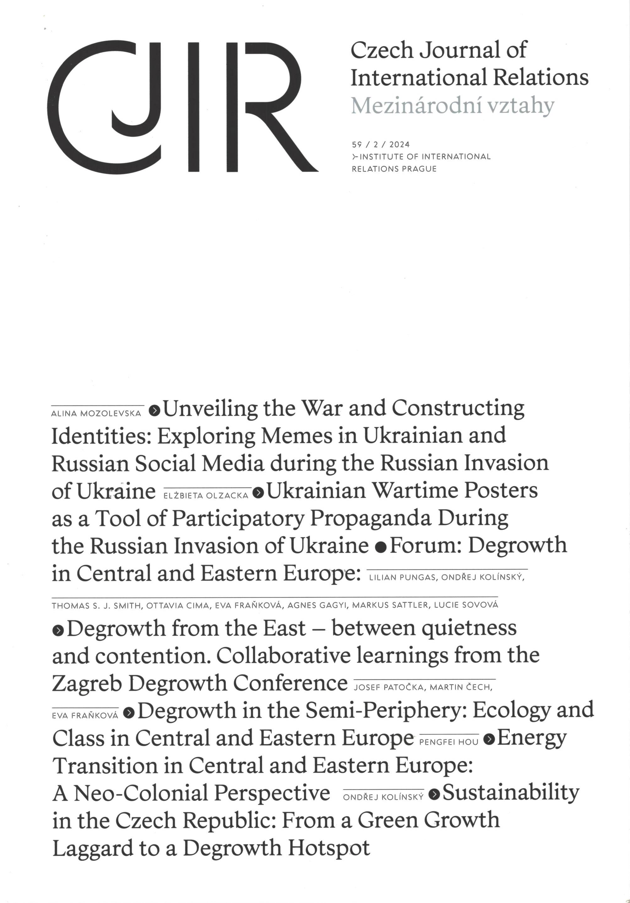 Title Czech Journal of International Relations Parallel title Mezinárodní vztahy Issue data Praha : Institute of International Relations ISSN 2788-2985 Year, No. Vol. 59, no. 2 (2024) Periodicals status Accepted (09.09.2024) Document kind časopisy Language English Country of Edition Czech Republic Database PERIODIKÁ - Prijaté čísla Copy count 1, currently available 0, at library only 1 References - PERIODIKÁ - Súborný záznam periodika