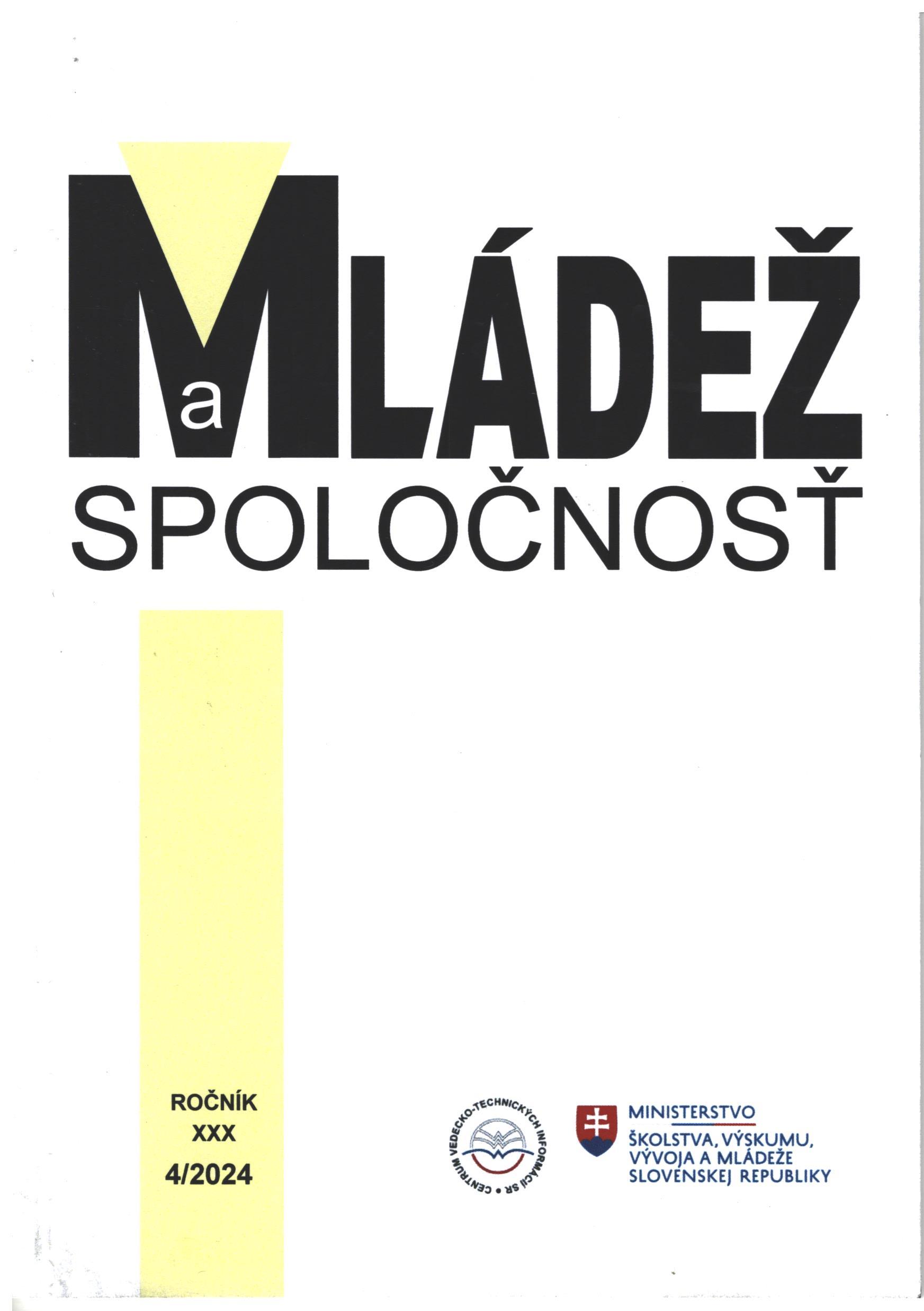 - 2024 ,č. 4. Mládež a spoločnosť : slovenský časopis pre štátnu politiku a výskum mládeže. Bratislava : Ministerstvo školstva, vedy, výskumu a športu Slovenskej republiky, 2024. ISSN 1335-1109 [Copy count : 1, currently available 0, at library only 1]