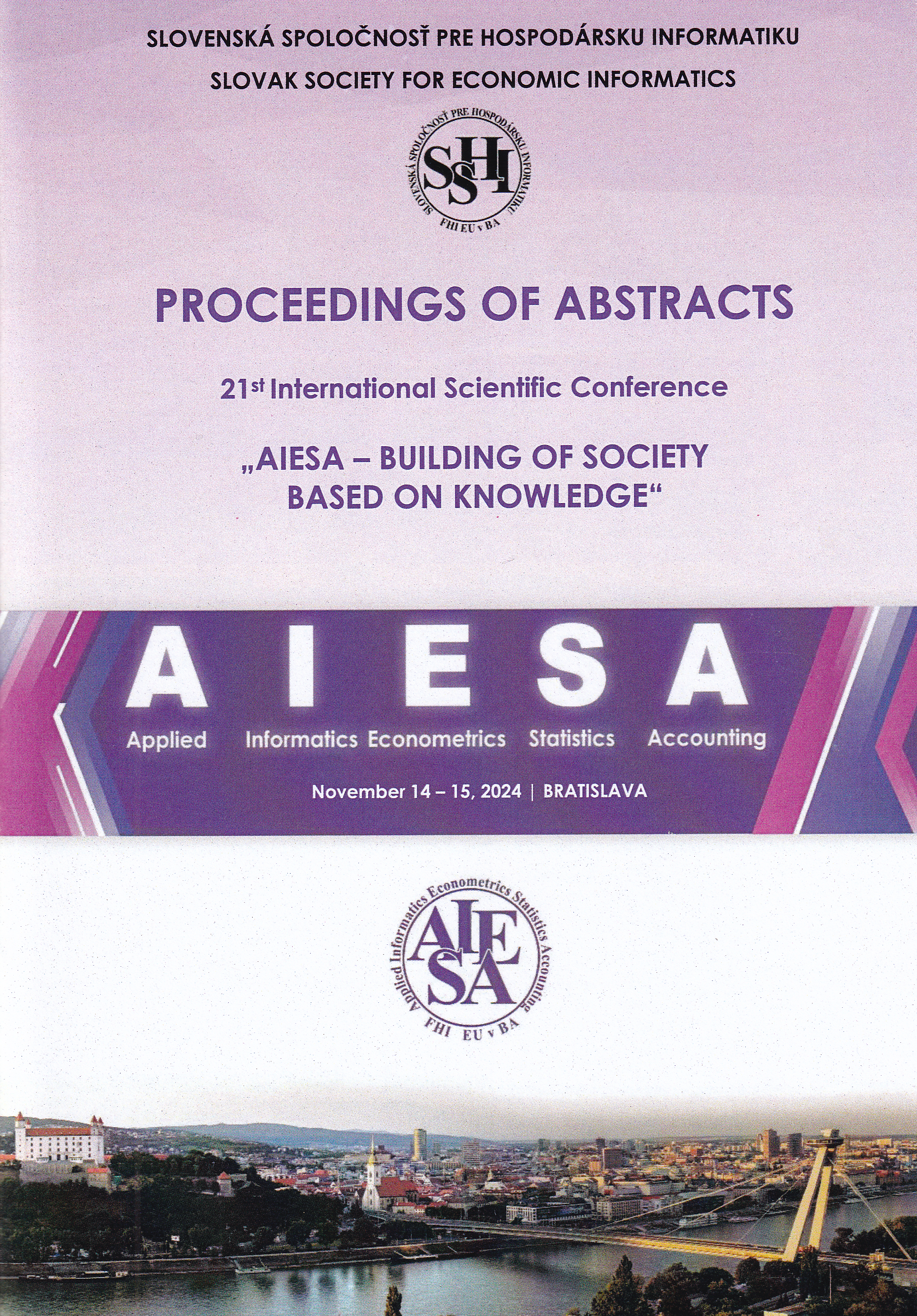 Title "AIESA - BUILDING OF SOCIETY BASED ON KNOWLEDGE" : Proceedings of Abstracts : 21st International Scientific Conference : November 14 - 15, 2024, Bratislava Author info Editor: Michaela Chocholatá Another authors Chocholatá Michaela (Editor) EUBFHIKOV - Katedra operačného výskumu a ekonometrie FHI Event/Corporation AIESA - Building of Society Based on Knowledge . International Scientific Conference , 21. , Bratislava, Slovakia , 14.-15.11.2024 Slovenská spoločnosť pre hospodársku informatiku Fakulta hospodárskej informatiky EU Issue data Bratislava : Vydavateľstvo EKONÓM , 2024. - 40 s. [1,99 AH] Issue 1st Edition ISBN 978-80-225-5185-4 (Paperback) , 978-80-225-5186-1 (Online (pdf)) Document kind miscellanea Language English Country of Edition Slovak Republic systematics 330.47 - Teória informácií v ekonomike. Ekonomická informatika Keywords informatika aplikovaná * ekonometria * štatistika aplikovaná * účtovníctvo * spoločnosť vedomostná * modelovanie ekonometrické * softvér Public work category Several publications and documents, which are not in any previous category Database PUBLIKAČNÁ ČINNOSŤ Copy count 2, currently available 1, at library only 1 References (59) - PUBLIKAČNÁ ČINNOSŤ Call number 929569, 929570 No. of Archival Copy E24 00444-001, online