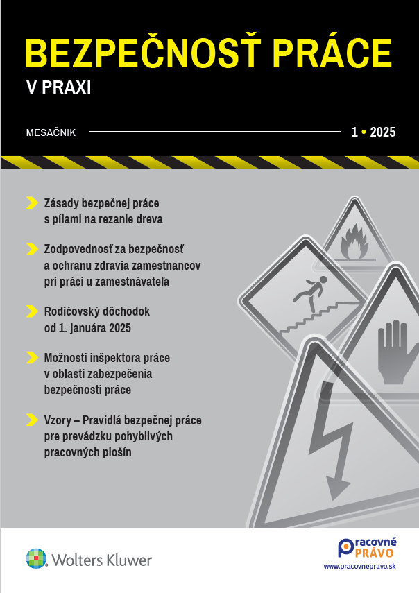 Title Bezpečnosť práce v praxi Issue data Bratislava : Wolters Kluwer SR ISSN 1338-6417 Year, No. Roč. 16, č. 1 (2025) Periodicals status Accepted (24.01.2025) Document kind časopisy Language Slovak Country of Edition Slovak Republic Database PERIODIKÁ - Prijaté čísla References - PERIODIKÁ - Súborný záznam periodika (4) - ARTICLES