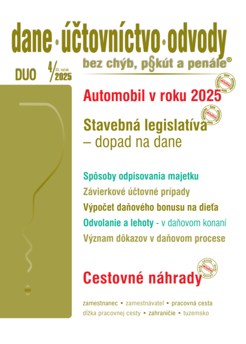 Title Dane - účtovníctvo - odvody : bez chýb, pokút a penále Issue data Žilina : Poradca ISSN 1336-7986 Year, No. Roč. 20, č. 4 (2025) Periodicals status Accepted (13.03.2025) Document kind časopisy Language Slovak Country of Edition Slovak Republic Database PERIODIKÁ - Prijaté čísla Copy count 1, currently available 0, at library only 1 References - PERIODIKÁ - Súborný záznam periodika