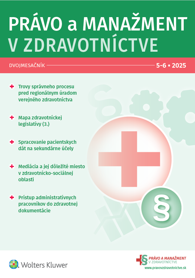- 2025 ,č. 5-6. Právo a manažment v zdravotníctve. Bratislava : Wolters Kluwer SR, 2025. ISSN 1338-2071