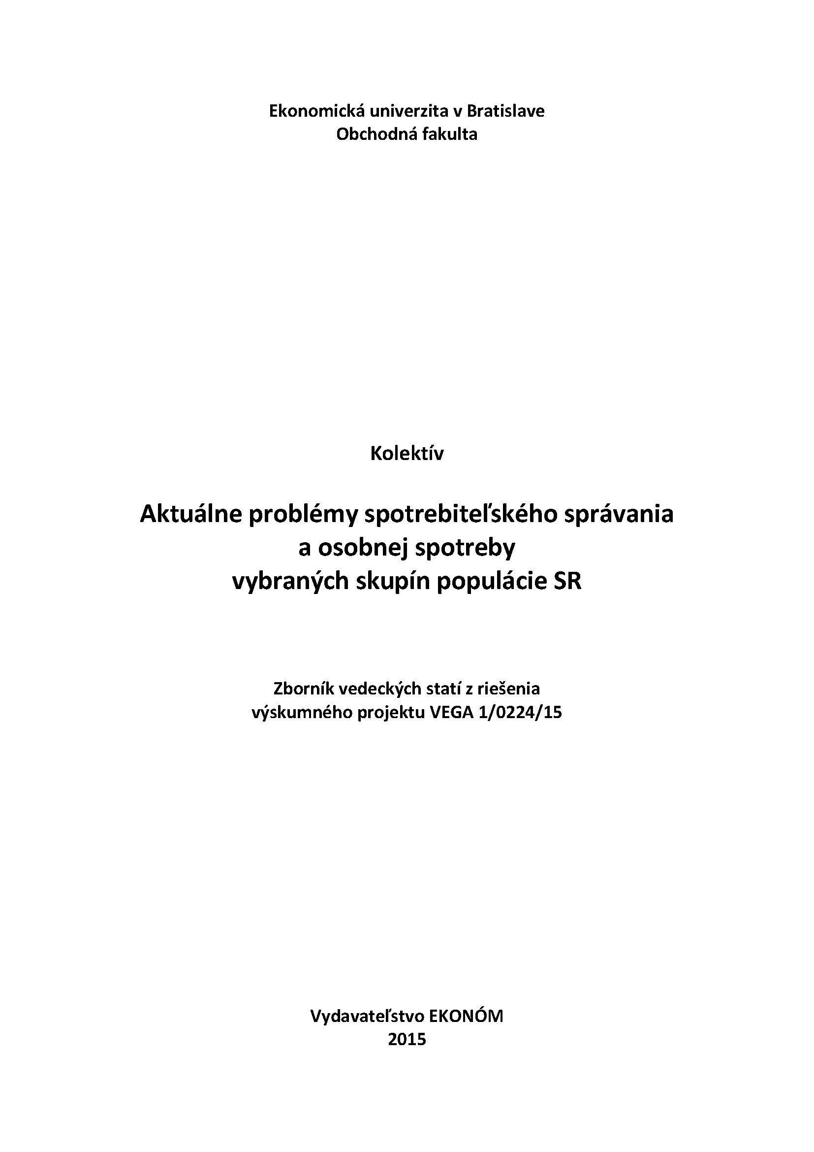 Aktuálne problémy spotrebiteľského správania a osobnej spotreby vybraných skupín populácie SR