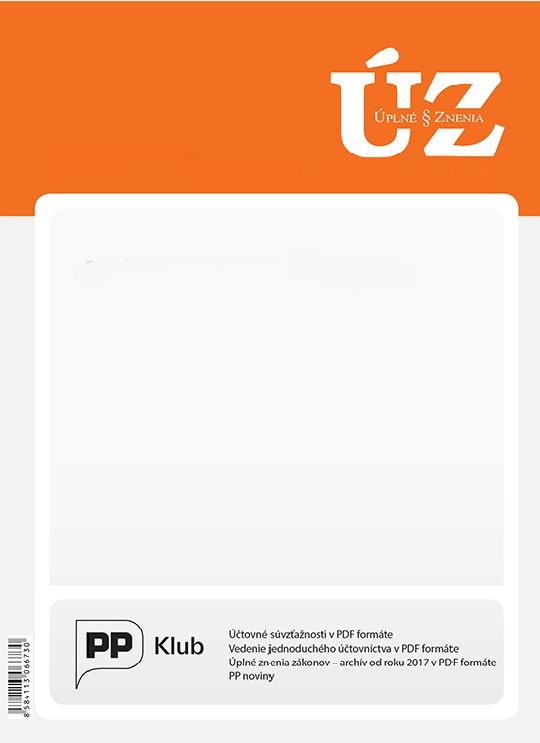 Názov ÚZ - Úplné znenia : Zbierka zákonov SR Vydavateľské údaje Žilina : Poradca podnikateľa ISSN 1335-2857 (print) Číslovanie 1998-2025 Periodicita vychádza nepravidelne Doba uchovávania uchováva dislokované pracovisko (podľa potreby) Druh dokumentu časopisy Jazyk dokumentu slovenčina Krajina vydania Slovenská republika Systematika 34 - Právo. Veda o štáte a práve Heslá zákony URL https://pdfuzz.pp.sk/ Báza dát PERIODIKÁ - Súborný záznam periodika Odkazy Súborný záznam: použite odkaz na záznam čísla alebo zväzku Čísla 2025: 1-25, 26-31 2024: 1-25, 26-34 2023: 1-25, 26-28