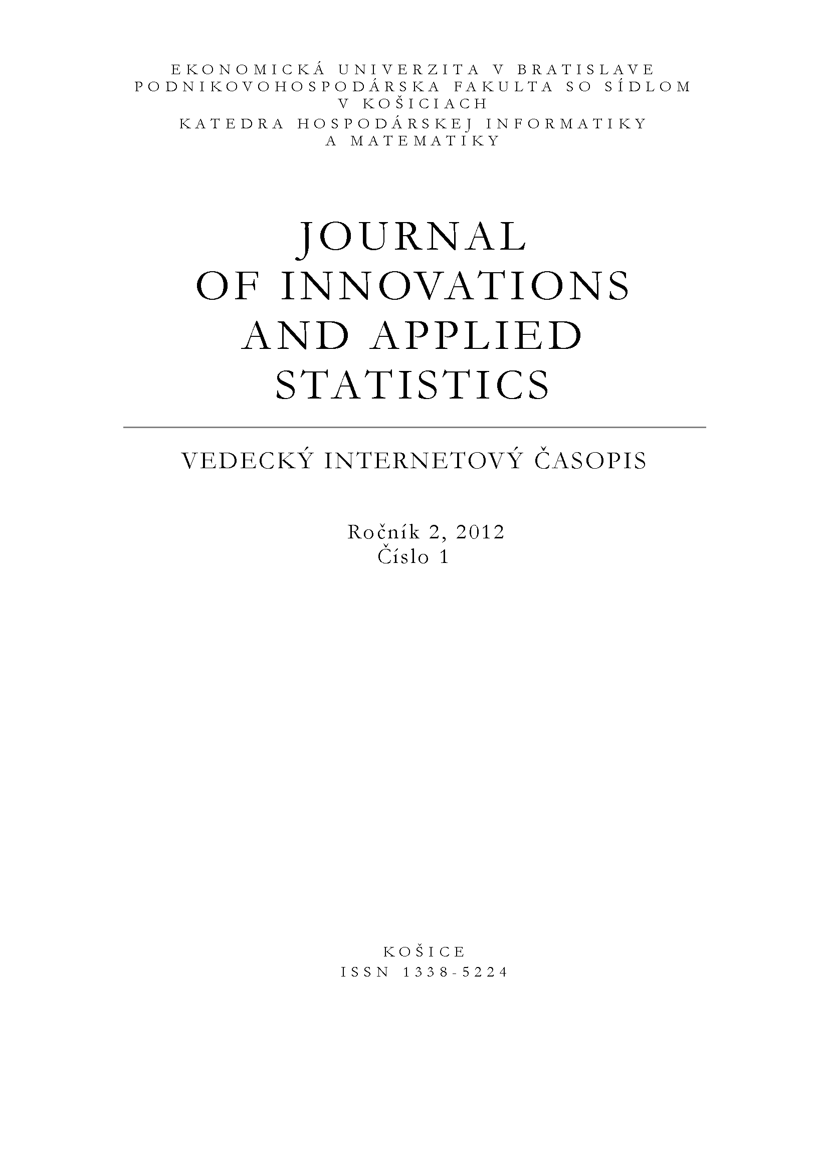 Názov Journal of innovations and applied statistics [elektronický zdroj] : vedecký internetový časopis Vydavateľské údaje Košice : Katedra hospodárskej informatiky a matematiky PHF EU ISSN 1338-5224 Roč., číslo Roč. 2, č. 1 (2012) Druh dokumentu elektronické časopisy Jazyk dokumentu slovenčina Krajina vydania Slovenská republika Báza dát PERIODIKÁ - Prijaté čísla Odkazy - PERIODIKÁ - Súborný záznam periodika (3) - PUBLIKAČNÁ ČINNOSŤ (3) - ČLÁNKY